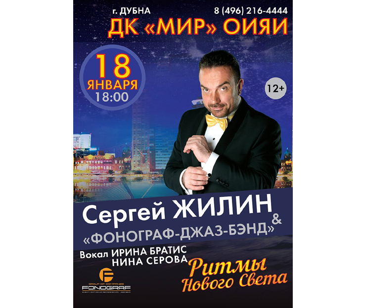 18 января 2020 г. в 18:00 часов Сергей Жилин и «Фонограф-Джаз-Бэнд» приглашают в Дом культуры «Мир» ОИЯИ на концерт «Ритмы Нового Света».