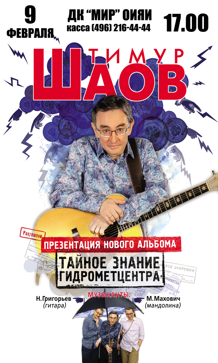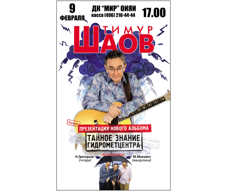 9 февраля 2020 г. в 17:00 часов Дом культуры «Мир» ОИЯИ приглашает на концерт Тимура Шаова.