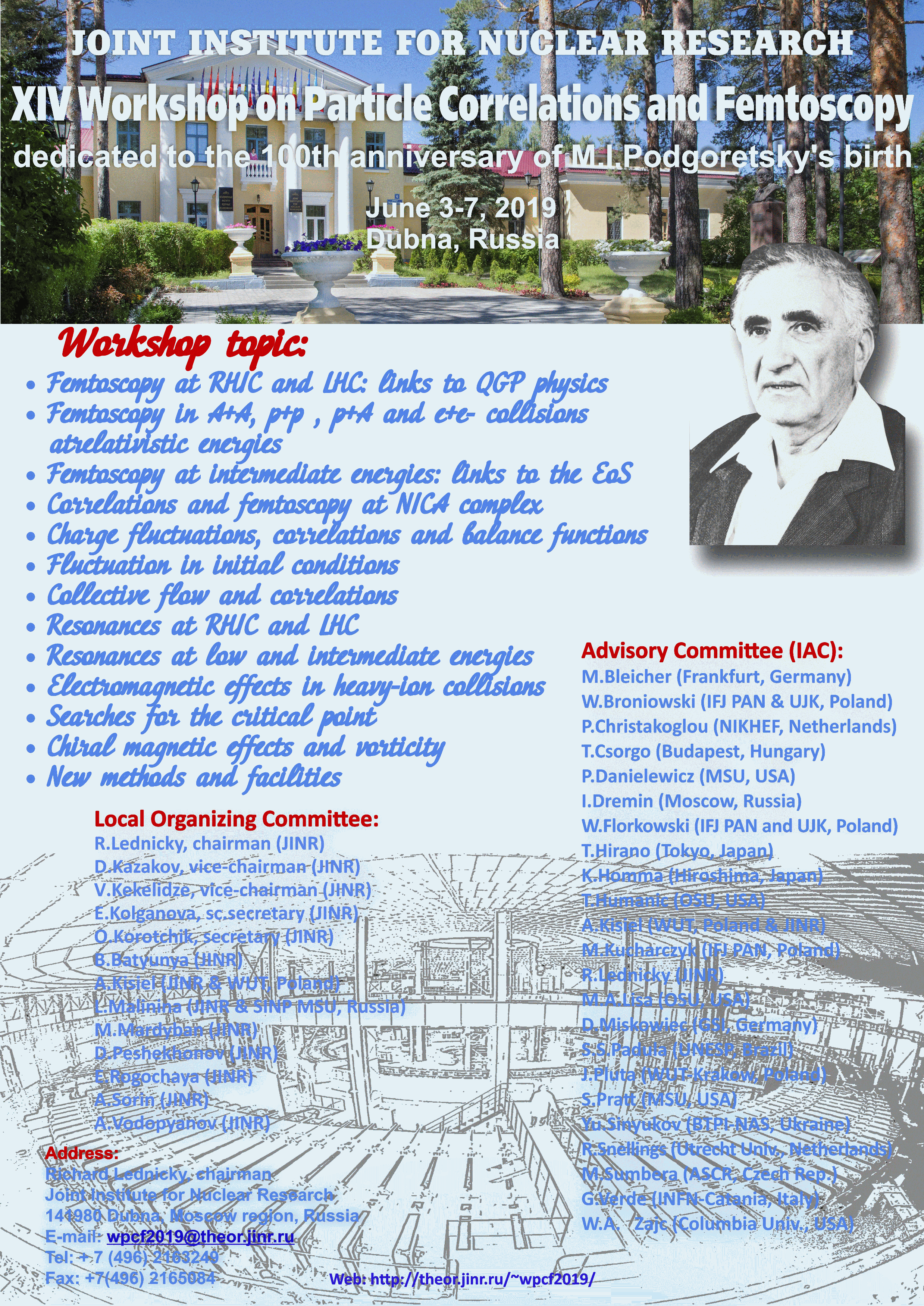 2 июня 2019 года свою работу начинает 14-е Международное рабочее совещание «Корреляция частиц и фемтоскопия» (WPCF2019), посвященное 100-летию со дня рождения М. Подгорецкого. Совещание организовано Объединенным институтом ядерных исследований.