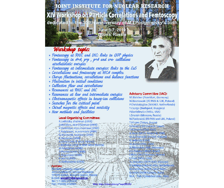 Около 70 специалистов в области корреляции частиц и фемтоскопии из Бразилии, Венгрии, Германии, Грузии, Испании, Италии, Нидерландов, Польши, России, Словакии, США, Украины, Финляндии и Чехии соберутся в Дубне.