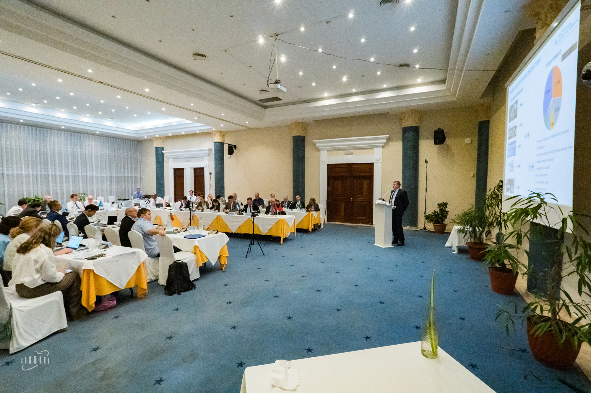 В своем выступлении Григорий Трубников подчеркнул высокую конкурентоспособность ОИЯИ на мировой научной арене. Институт сохраняет второе место среди международных межправительственных научных организаций по численности персонала и шестое — по объему бюджета среди всех организаций, ведущих исследования в области естественных наук. За последние пять лет учеными ОИЯИ опубликовано в рецензируемых изданиях свыше шести тысяч научных работ.