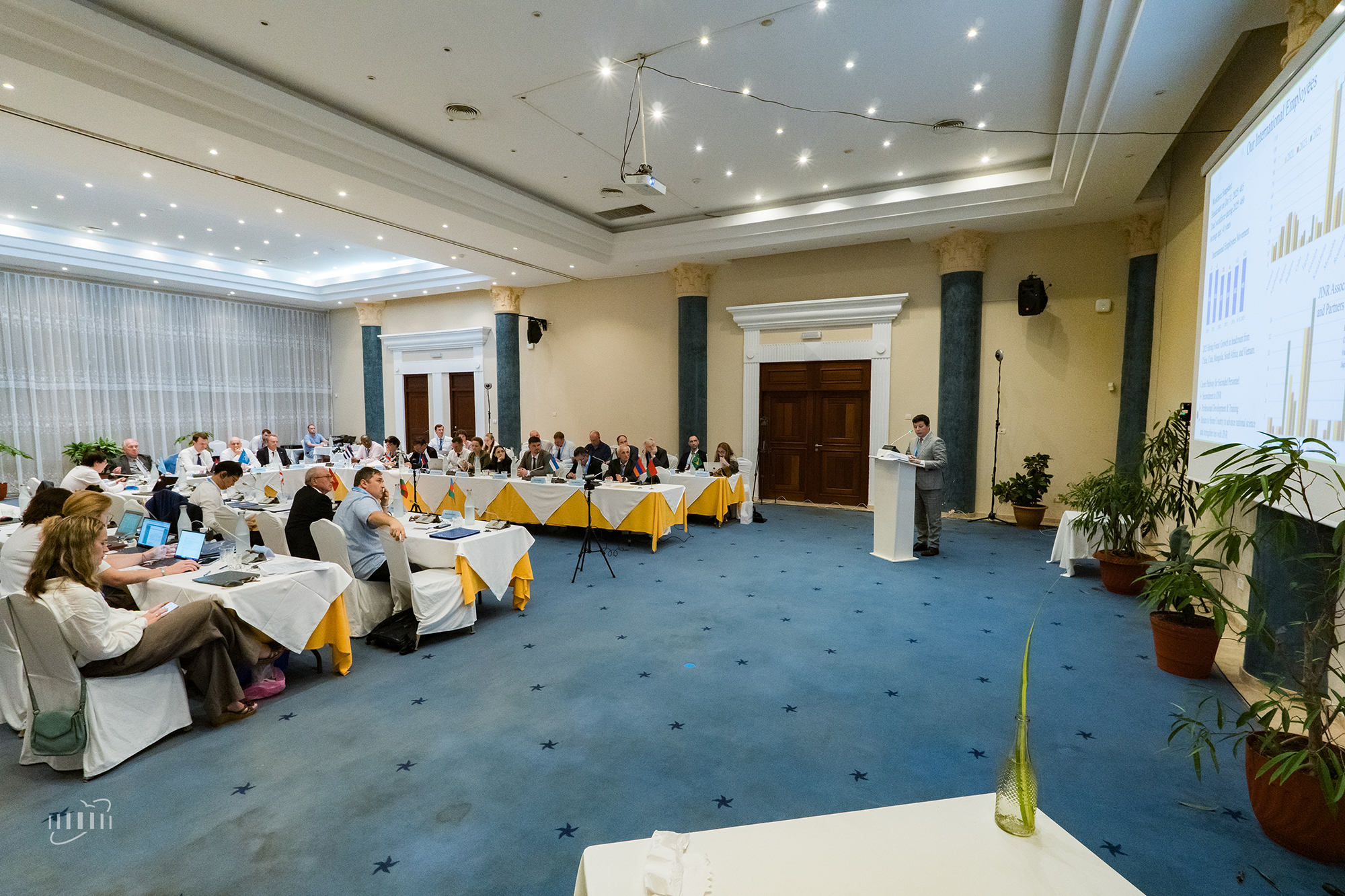 Значимый источник пополнения штата — сотрудники, направленные полномочными представителями своих государств, за 2025 год было трудоустроено 460 направленных сотрудников, больше всего — из Казахстана и Вьетнама. Доля научных сотрудников из стран-участниц сейчас составляет примерно четверть от всех ученых Института. Александр Верхеев отметил, что дирекция ОИЯИ активно занимается расширением и ремонтом жилого фонда Института для размещения иногороднего персонала.