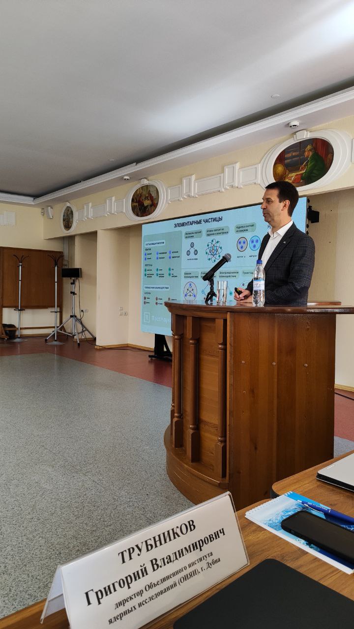 В ответном слове директор ОИЯИ Григорий Трубников, почетный доктор САФУ, выразил признательность руководству и сотрудникам университета за организацию встречи. «Задача таких мероприятий — продолжать возбуждать у студентов и школьников интерес к большой науке, рассказывать о больших научных проектах и, конечно, устанавливать и развивать связи между инфоцентрами ОИЯИ», — добавил директор Института.