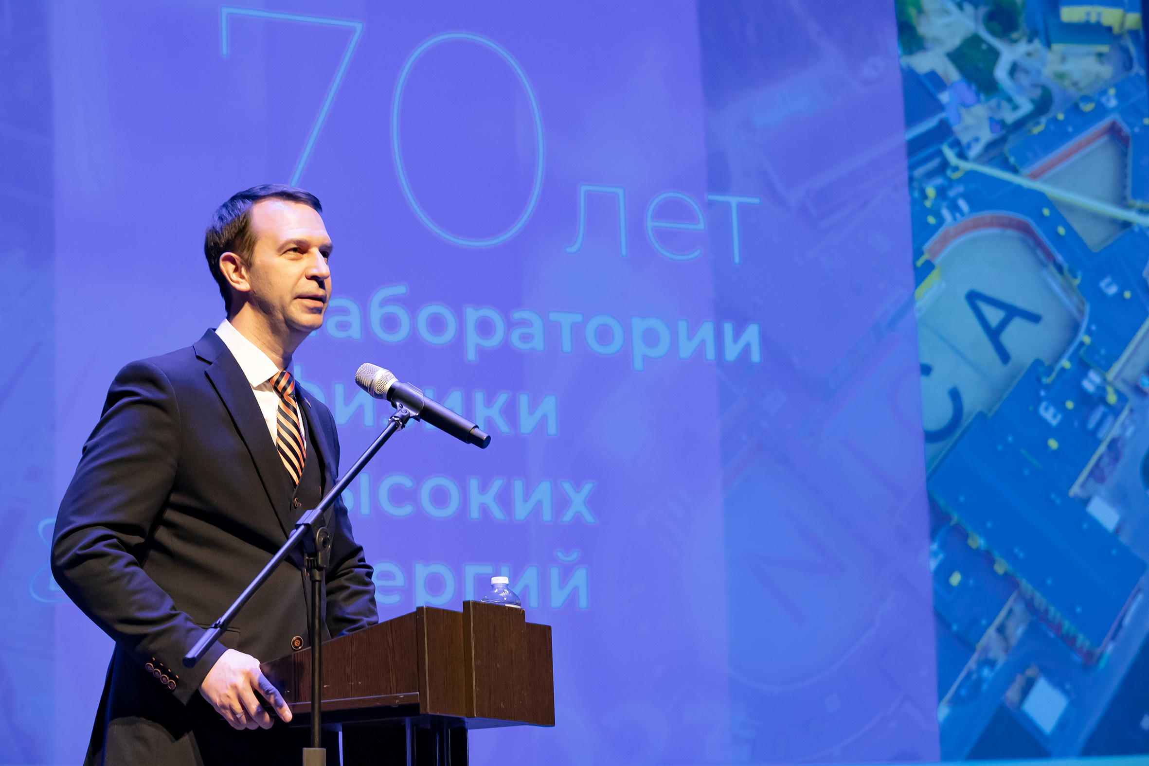 В приветственном слове Андрей Бутенко подчеркнул значимость коллектива сотрудников Лаборатории в осуществлении самых смелых научных замыслов. «Одной из главных наших задач является строительство новых ускорителей. Без настоящей, мощной команды ученых, инженеров, техников, рабочих реализовать такие проекты невозможно. Поэтому главное наследие и достояние Лаборатории и всего Института – это наша команда, которая всегда была на переднем крае науки. Любые задачи, которые мы перед собой ставили, мы решали таким образом, чтобы воплощать самые современные и революционные идеи. Благодарю весь коллектив за ваши усилия, за готовность решать, казалось бы, нерешаемые задачи, за смелость в этих решениях и за вашу работу», — сказал Андрей Бутенко. И. о. директора лаборатории рассказал, что сотрудники Лаборатории стараются не ходить уже проторенными путями в науке и инженерии, используя новаторские подходы. «В том же ключе мы работаем над созданием NICA – практически каждая система комплекса имеет свои ноу-хау», — добавил он.
