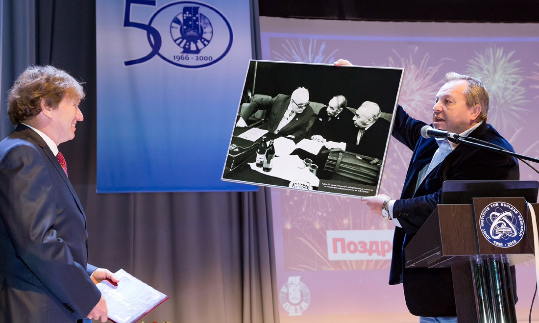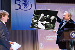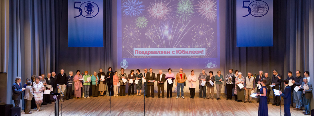 A group of LIT employees and veterans in a ceremonial atmosphere were awarded honorary staff member diplomas, honorary diplomas and certificates of the Institute. For LIT veterans the festive event in the Cultural Centre was not only a meeting with ex-colleagues and friends, but with their youth captured on black-and-white photographs of the laboratory wall newspaper “Impulse”, issues of which adorned the exhibition hall of the Cultural Centre.