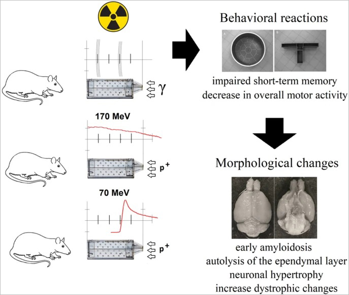 After exposure to ionising radiation, scientists tested animals for possible cognitive abnormalities. The irradiation led to a disturbance of memory, a decrease of overall motor activity and exploratory behaviour, a rise in anxiety. The changes in such physiological parameters of animals as the blood composition, the body weight of rats, the weight of the thymus, and the weight of the spleen were evaluated. Scientists made the preparations of the brain of rats and analysed histological images.