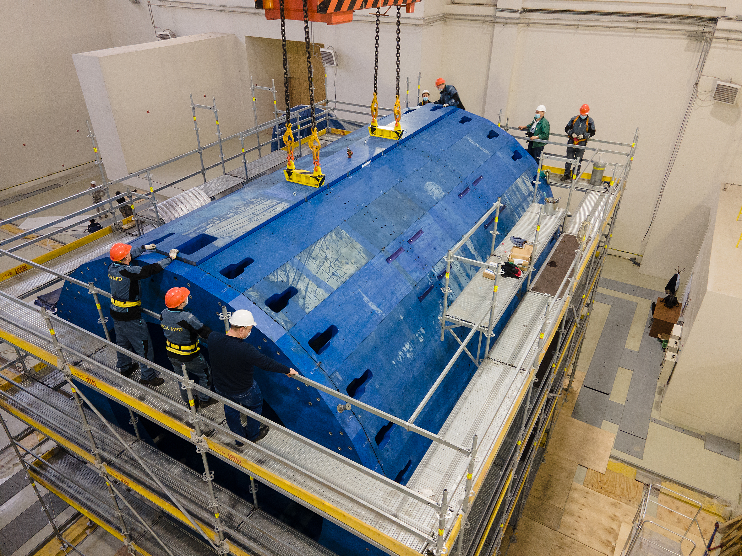 Магнитопровод собран и готов к интеграции со сверхпроводящим соленоидом, прибытие которого из Италии широко освещалось в российских СМИ. Финальные измерения геометрии магнитопровода вновь показали высокую точность изготовления плит и опорных колец и их сборки в единое целое.