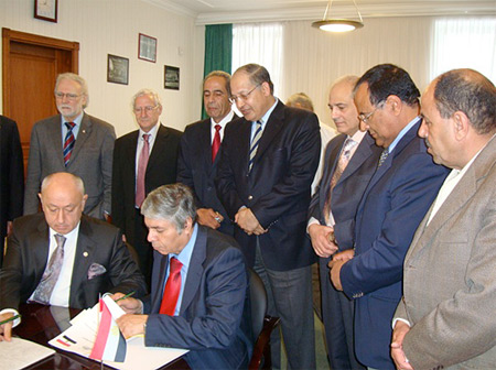 Дубна, 27 мая 2009 г. Визит в ОИЯИ делегации специалистов из Египта во главе с директором Таббинского института металлургических исследований (Каир) д-ром Мохамедом Гамалем Халифой (справа)