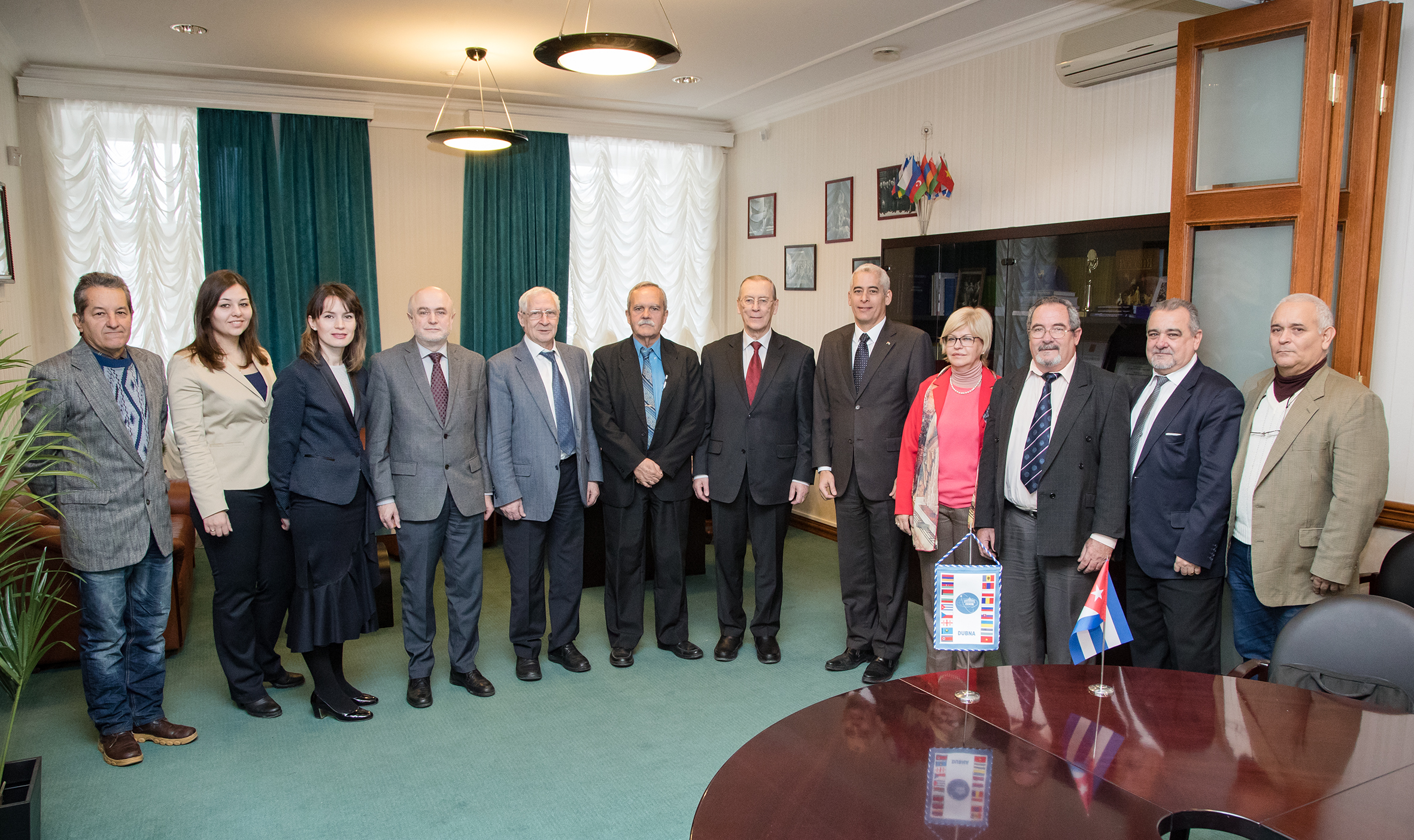 - 28 февраля 2018 г. представительная делегация Республики Куба посетила ОИЯИ. В состав делегации вошли Заместитель министра науки, технологий и окружающей среды Кубы Данило Алонсо Медерос, Чрезвычайный и Полномочный Посол Кубы в РФ Херардо Пеньяльвер Порталь, президент Агентства по атомной энергии и передовых технологий (AENTA), директор Центра прикладных технологий и ядерного развития (CEADEN) Ангелина Диас Гарсиа, помощник председателя AENTA по финансово-экономическим вопросам Хосе Луис Дона, специалист по международным отношениям Министерства науки, технологий и окружающей среды Карлос Мендес, советник-посланник Посольства Кубы в Москве Роландо Сайяс Бу. В Объединенном институте кубинскую делегацию сопровождал старший научный сотрудник ЛЯП ОИЯИ профессор Антонио Лейва Фабело