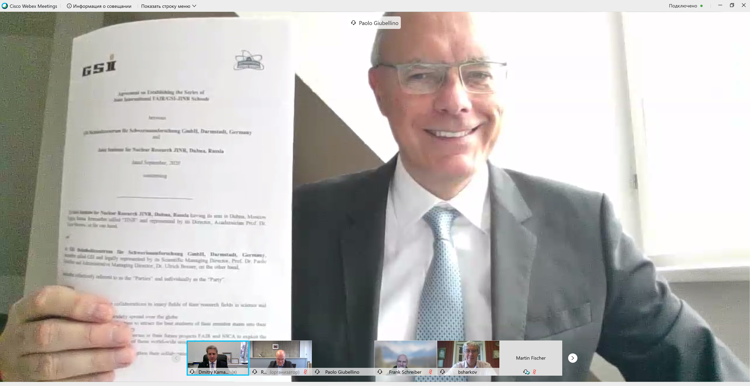 The key event of the meeting of the Coordination Committee was the signing of an agreement between JINR and FAIR/GSI on the establishment of a series of DD (Dubna-Darmstadt) joint international schools. Boris Sharkov and FAIR/GSI Science Director Paolo Giubellino signed the document. The agreement is intended to attract the best young researchers of the JINR and FAIR Member States to the rich science and technology field both organizations are engaged in. The organizers find it important that in the framework of an 8-day programme of the School both the experiment and the theory are presented covering, in particular, the topics of hadron and nuclear physics, atomic physics, plasma physics, material sciences, biophysics and radiation medicine, accelerator physics, detector studies and developments, micro/nanoelectronics, information technologies and high-performance computing, etc. The document provides financing of the school by both parties.