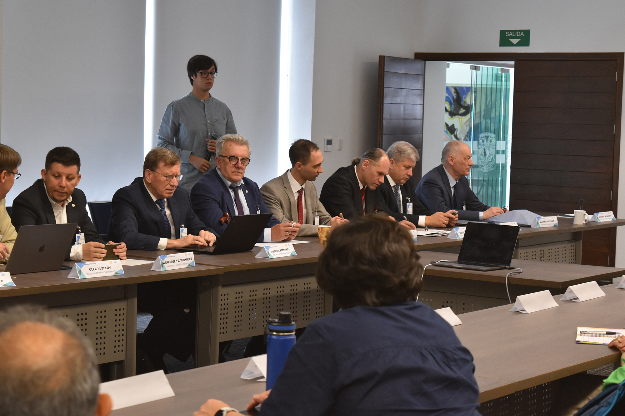 Круглый стол стартовал с короткого официального открытия руководителями Института наук и технологий Штата Мичоакан, а также университета UMSNH, школы FC и Физико-математического института. Хорхе Фонсека, ученый секретарь UMSNH, приветствовал участников от имени ректора университета. После краткого обзора деятельности ОИЯИ в представлении директора Учебно-научного центра Института Дмитрия Каманина, Мария Елена Техеда-Йоманс (UCol), член коллаборации MPD на NICA, выступила с докладом «Сотрудничество ОИЯИ и мексиканских организаций». Ее вступление положило начало первой серии вопросов, касающихся возможностей ОИЯИ для студентов.