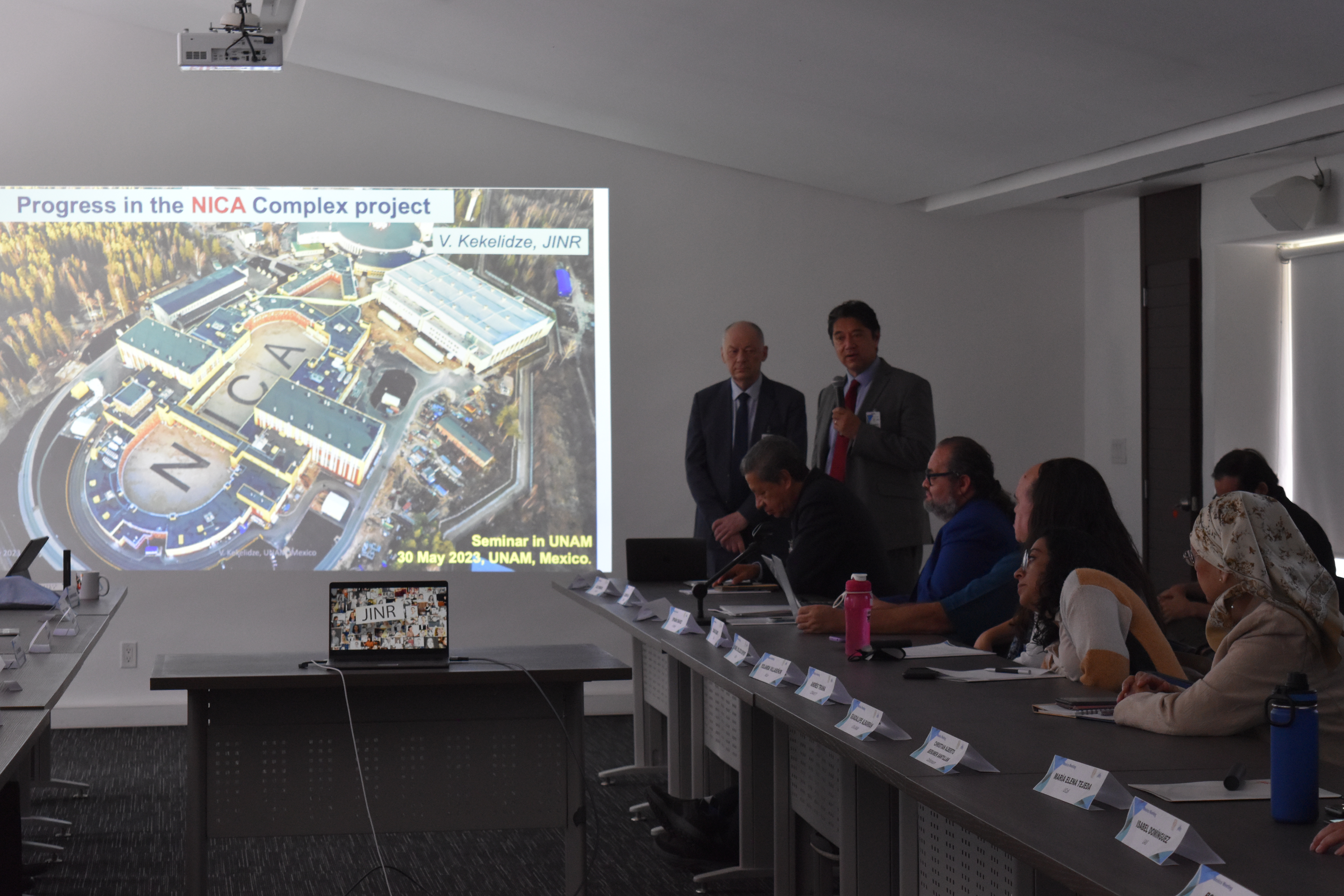 Во вторник, 30 мая, делегация ОИЯИ провела ряд презентаций в семинарском центре им. Игнасио Чавеса Unidad de Semanarios университета UNAM. Мероприятие привлекло внимание исследователей и профессоров из университетов UNAM, UMSNH, Университета штата Пуэбла (BUAP), Национального онкологического института (INCAN), Центра передовых исследований (Cinvestav), Автономного университета Столичного региона (UAM), Университета Колима (UCol), Автономного университета Синалоа (UAS) и Университета Америк в Пуэбле (UDLAP).