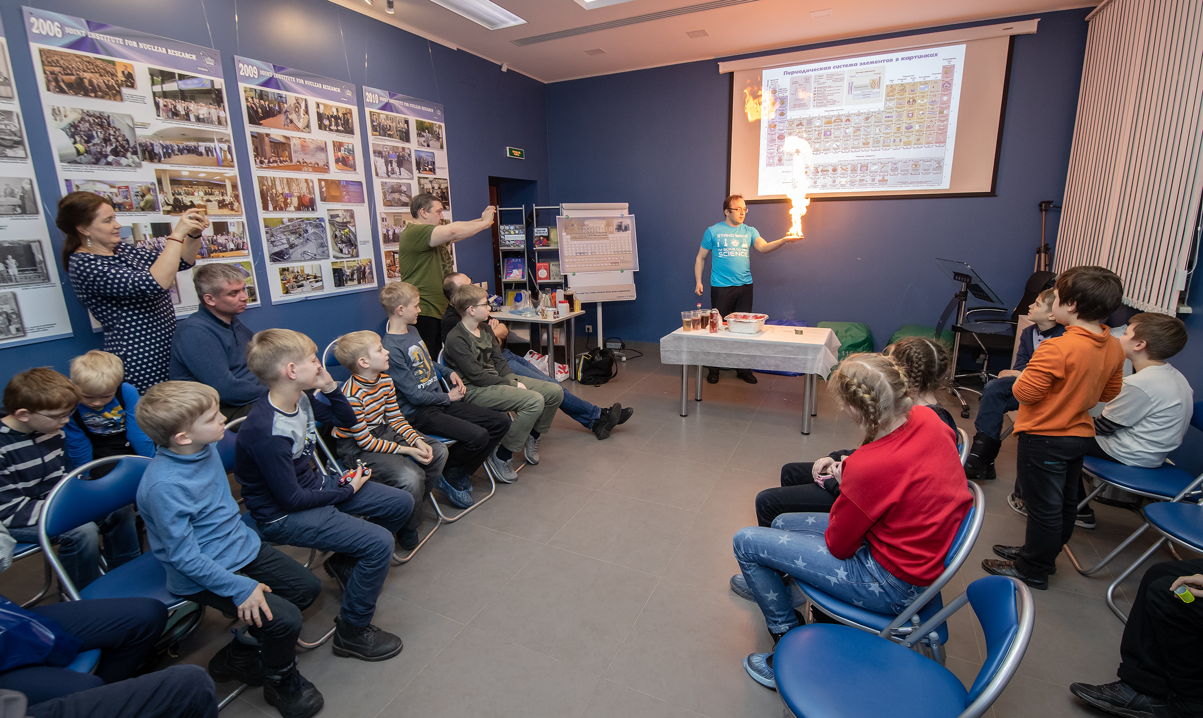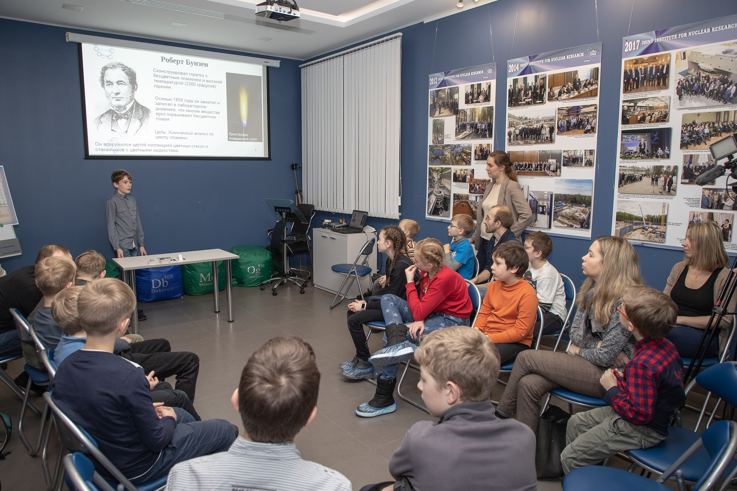 Two biographical films about Mendeleev and the “Synthesis of element 102” documentary were demonstrated to the listeners of the lectures.