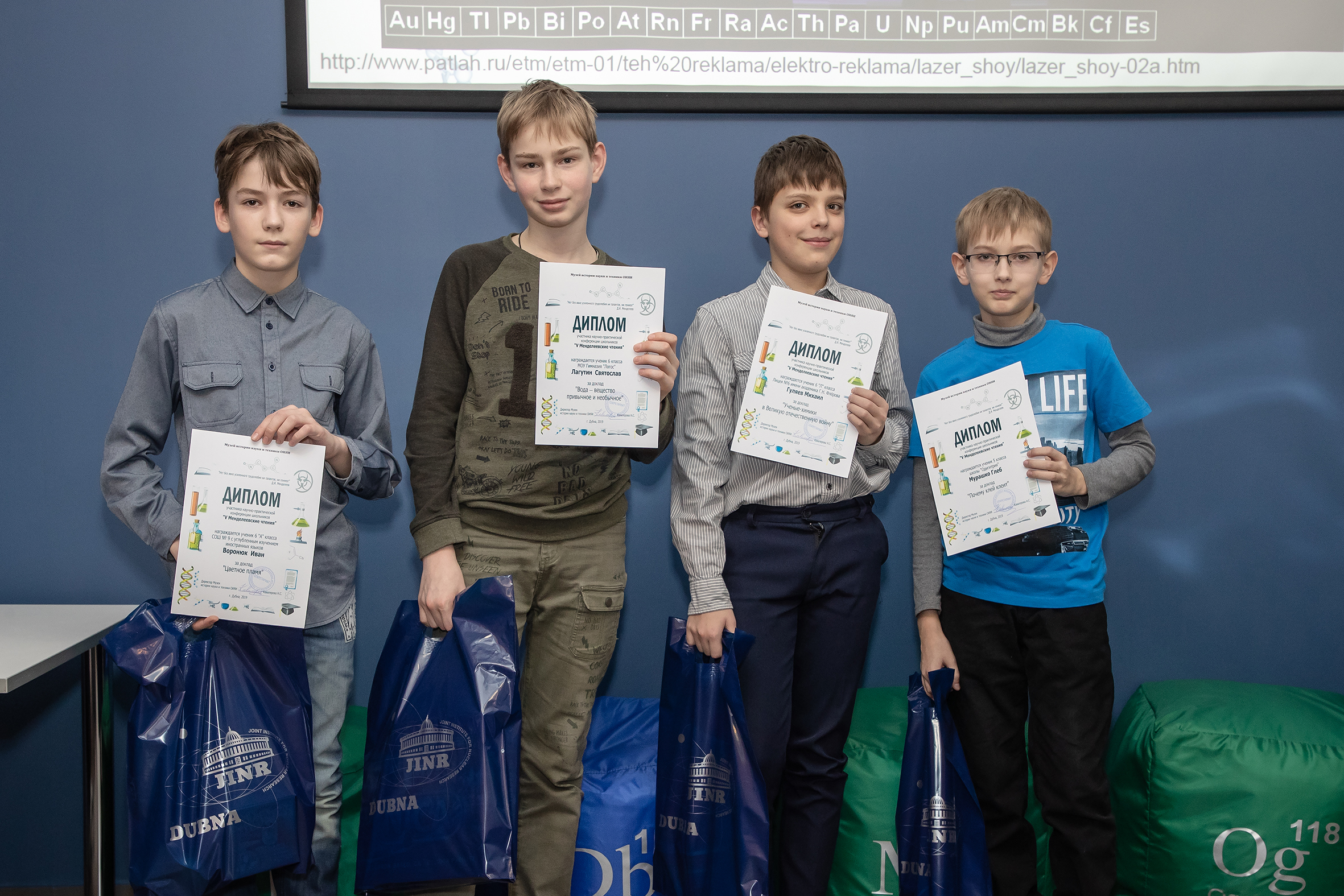 The Scientific and Practical Conference for schoolchildren held in the frames of the Mendeleev Readings was opened with the lecture “The wonderful Periodic Table of chemical elements” by A.E. Zlotnikova. The lecturer reported in the unique personality of D.I. Mendeleev and unique facts “hidden” in charts of the Table… Eight school students of 4-8 grades made reports on chemical topics: “Is Coca-Cola harmful? Myths and reality”, “Coloured flame”, “Why does glue stick?” and others. All reporters got commemorative diplomas, souvenirs with the JINR symbolics and sets for chemical experiments. A vivid excitement of the young audience was caused by spectacular chemical experiments demonstrated by JINR staff members Vadim Skoy and Dmitry Dryablov.