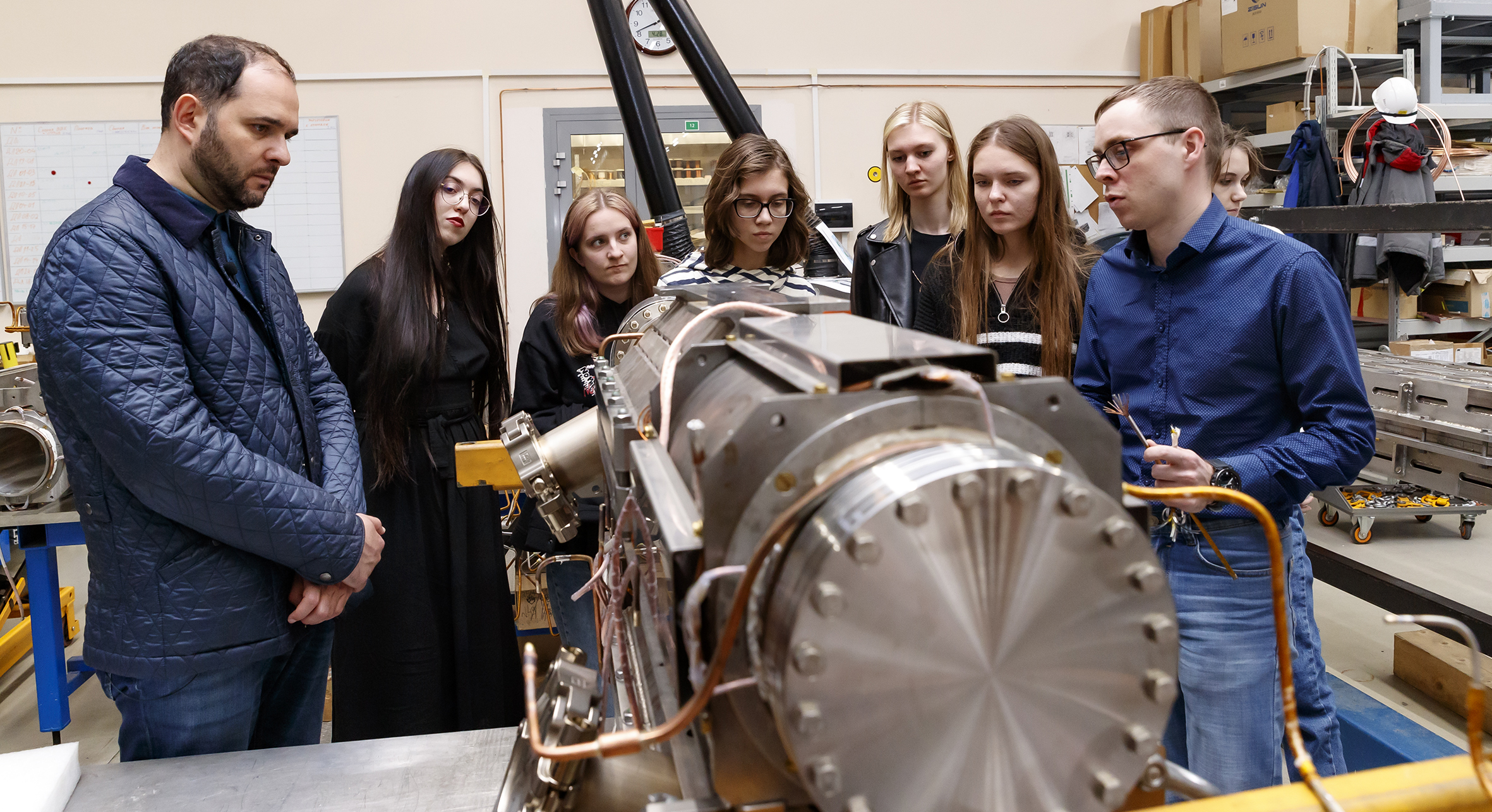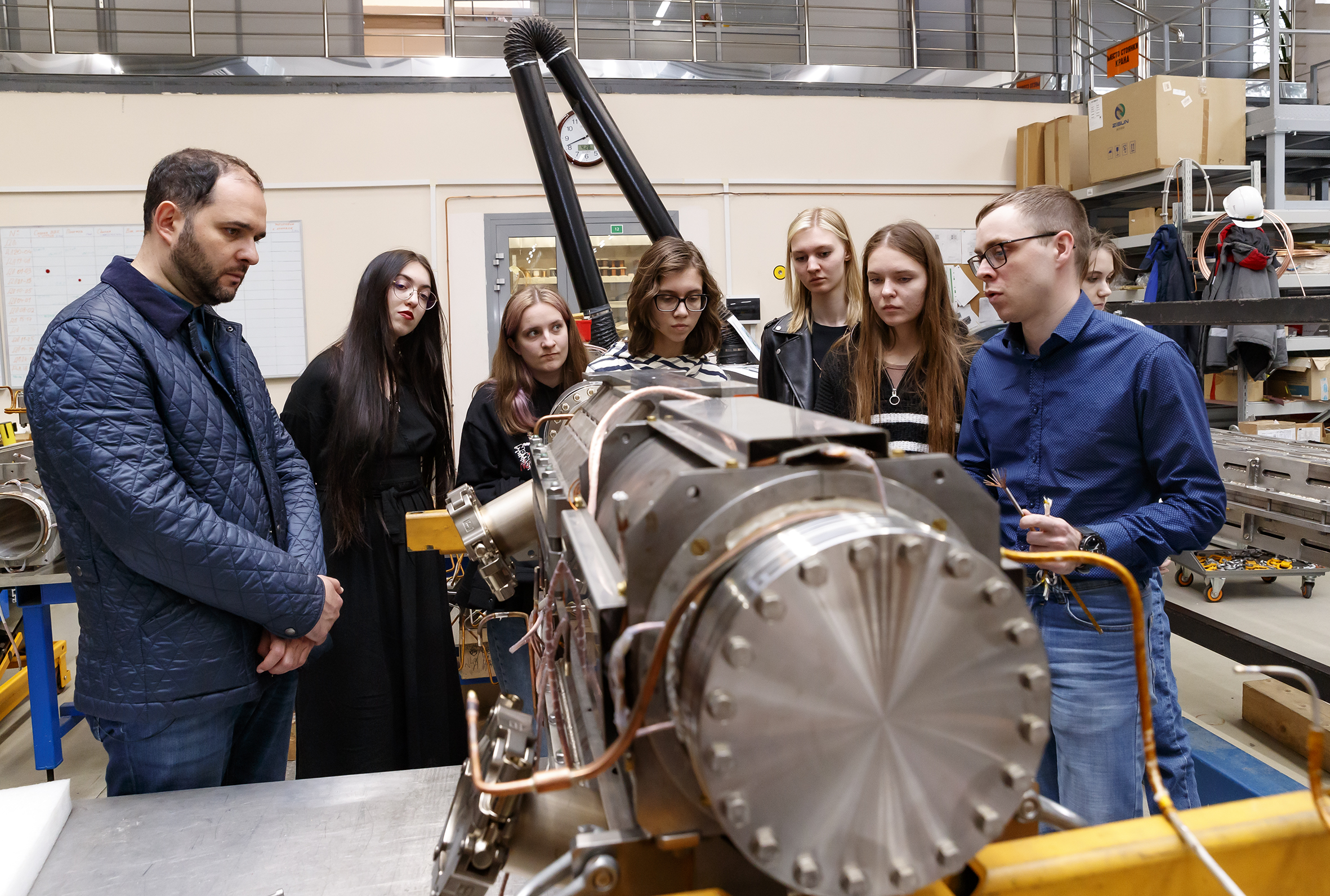 On 28 April, 15 best students of the Mendeleev University of Chemical Technology of Russia visited Dubna to make a tour of the NICA Megascience Project and the science city. The tour was organized within the new Russian popular science tourism project “Mendeleev Tour”.