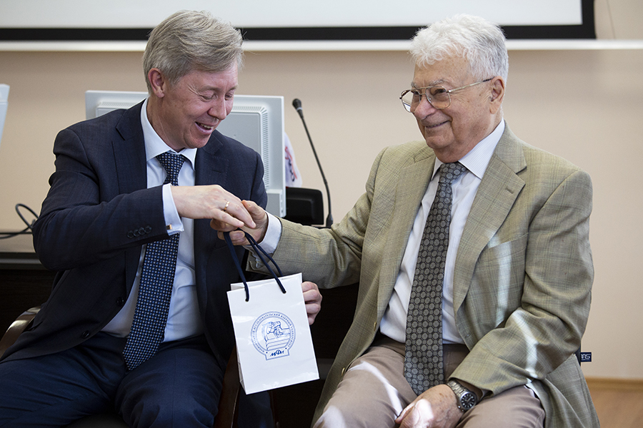 In conclusion, MEPhI Rector M.N. Strikhanov presented the order “For Services to MEPhI” to the outstanding graduate of his Alma mater Academician Yu.Ts. Oganessian.