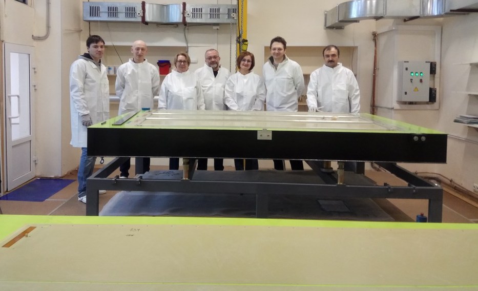 Participants of assembling of the first Micromegas readout panel. DLNP Assembling site, May 2017