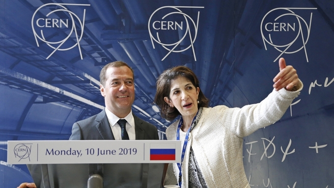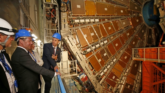 Перед встречей российская делегация во главе с Дмитрием Медведевым осмотрела в ЦЕРН Большой адронный коллайдер и экспериментальную установку ATLAS, часть которой изготовлена и настроена специалистами из Объединенного института ядерных исследований. Во время экскурсии делегацию сопровождала генеральный директор ЦЕРН Фабиола Джанотти.