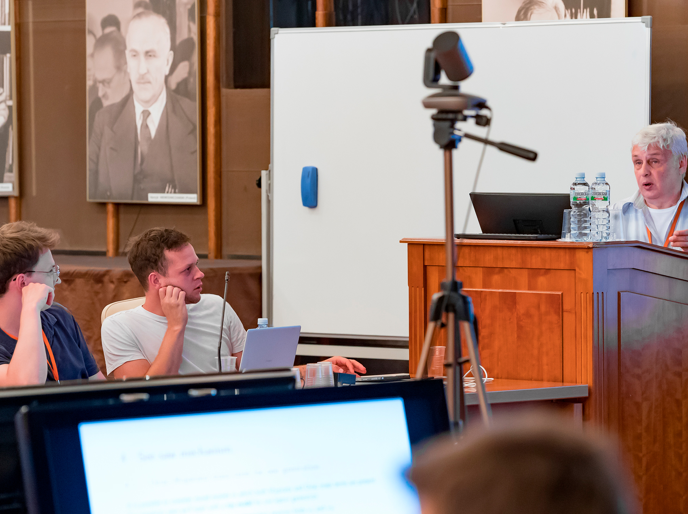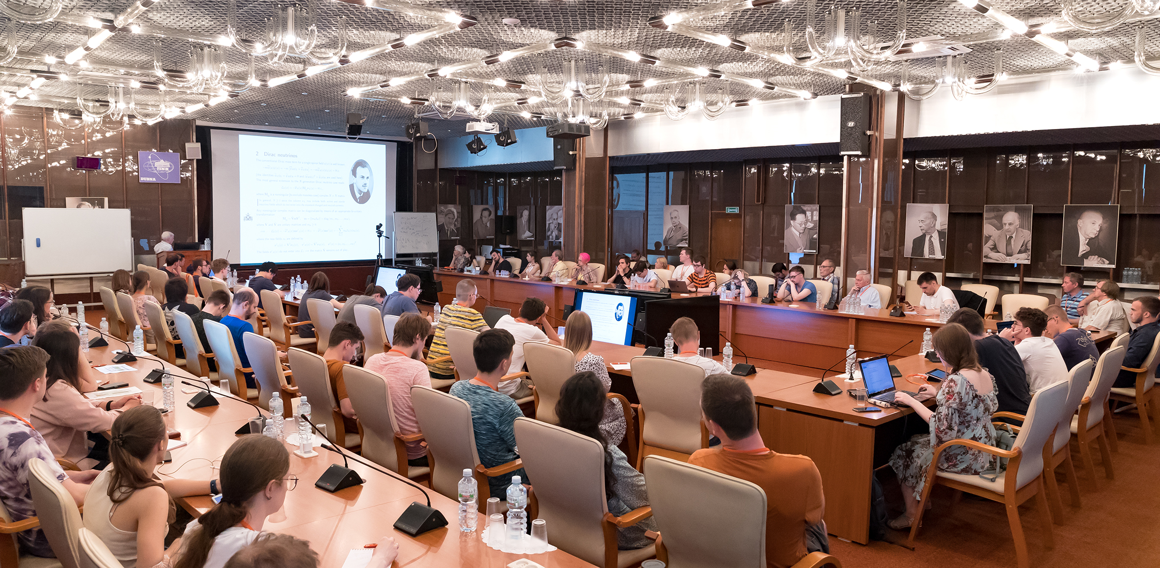 In his welcoming speech, Dmitri Kazakov drew participants’ attention to the fact that the School is taking place in the same hall, where the JINR Scientific Council and the Committee of Plenipotentiaries of the Governments of the JINR Member States have their meetings. “There are portraits of outstanding scientists, founders of the Joint Institute who met and worked here, on the walls of this hall. We can say that the School is taking place in a historical place,” the speaker emphasised.
