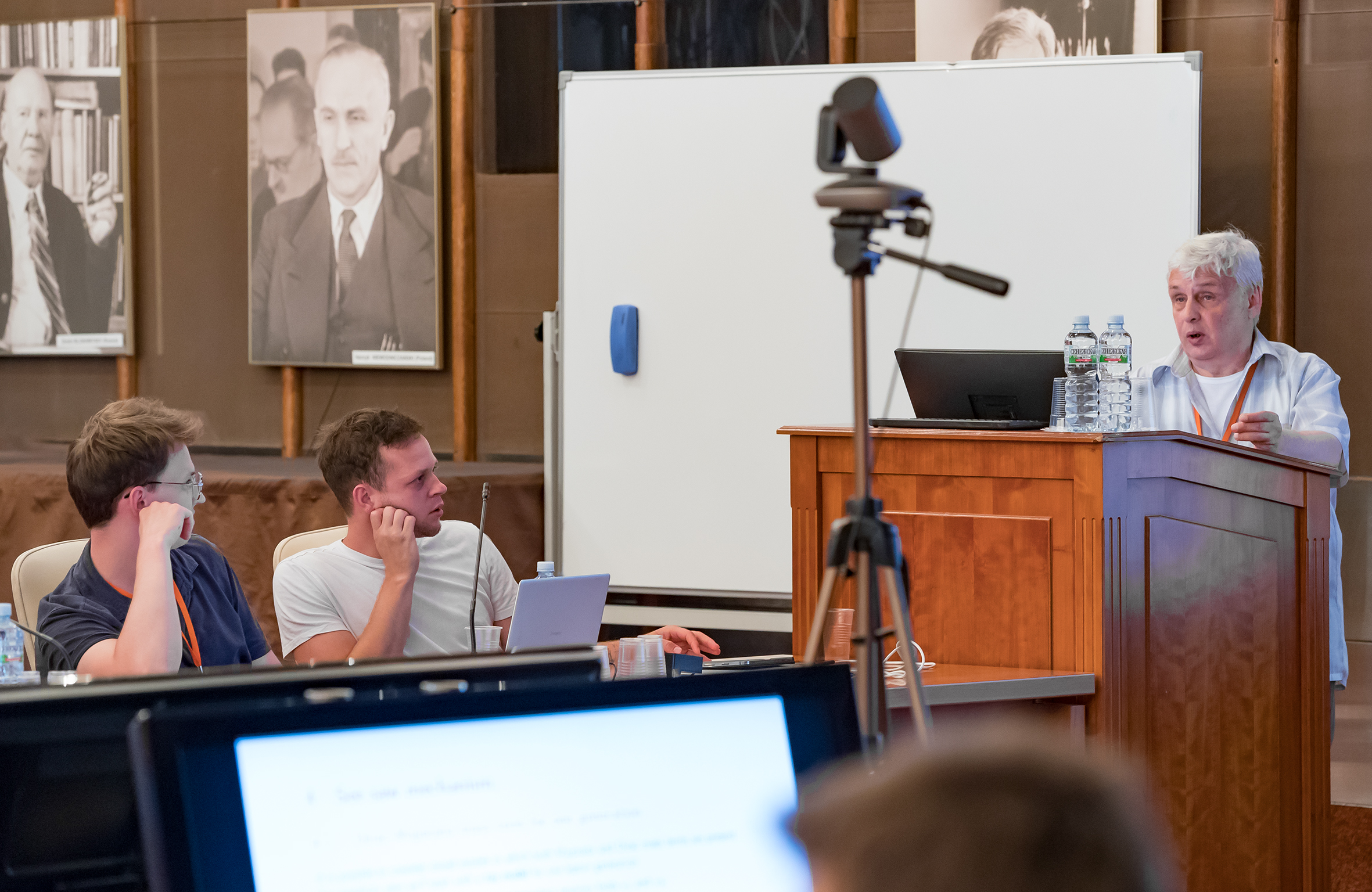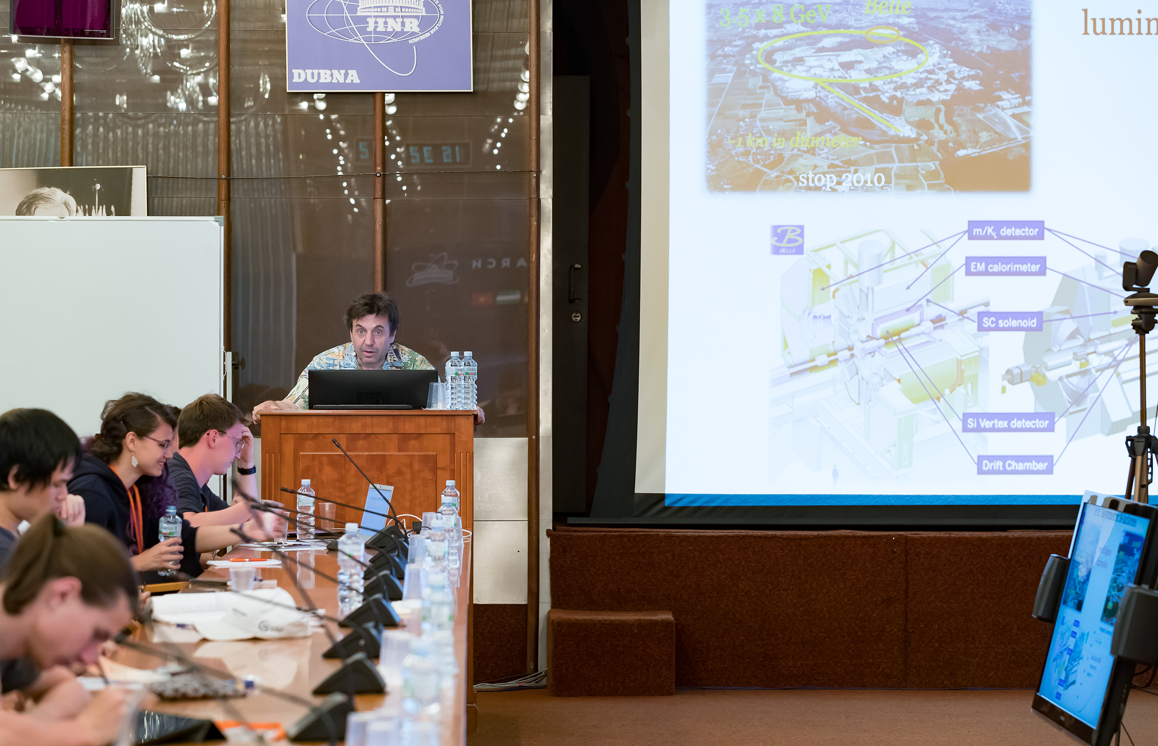 In his welcoming speech, Dmitri Kazakov drew participants’ attention to the fact that the School is taking place in the same hall, where the JINR Scientific Council and the Committee of Plenipotentiaries of the Governments of the JINR Member States have their meetings. “There are portraits of outstanding scientists, founders of the Joint Institute who met and worked here, on the walls of this hall. We can say that the School is taking place in a historical place,” the speaker emphasised.