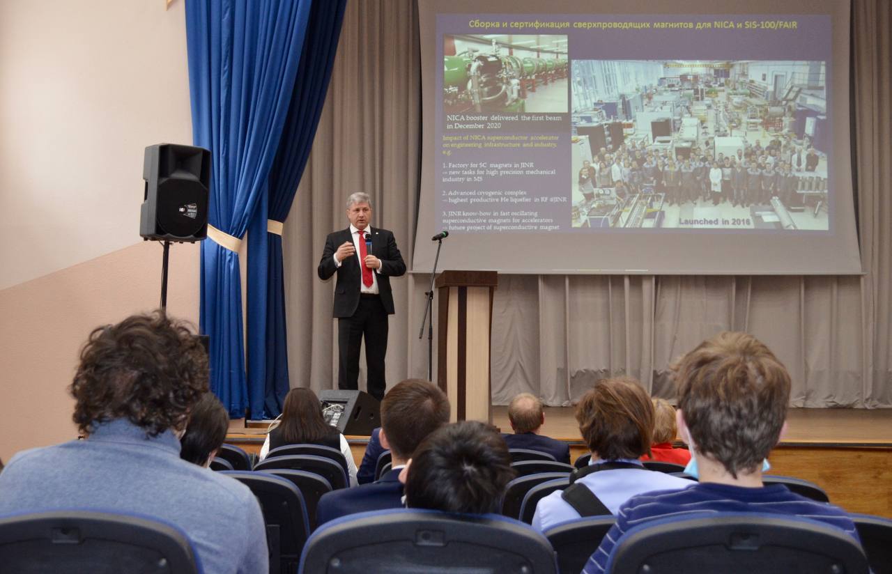 On the same day, the opening of the Natural Science School for students and schoolchildren took place, within the framework of which JINR specialists will give lectures for schoolchildren and students on various areas of research carried out at the Institute.