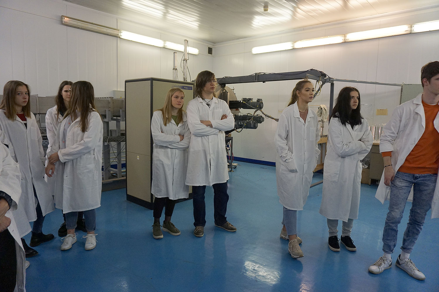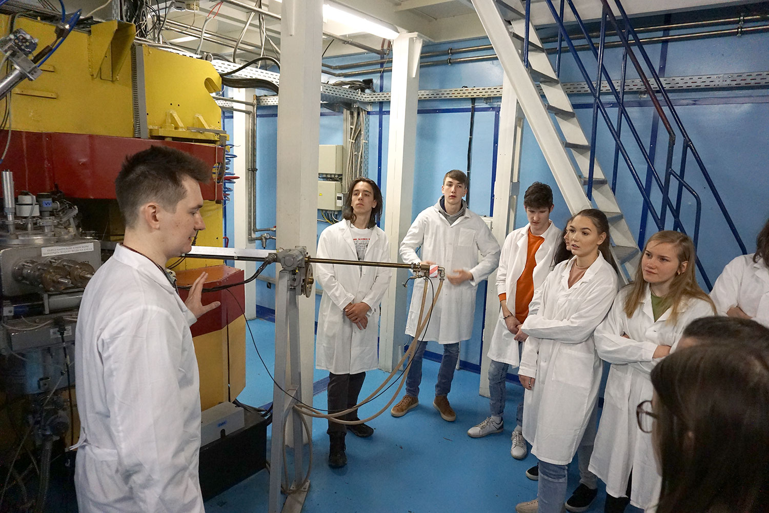 Школьников принимали в Лаборатории ядерных реакций им. Г.Н. Флерова, где младший научный сотрудник Р. Рымжанов рассказал ребятам об истории Лаборатории, о вкладе дубненских ученых в пополнение Таблицы Менделеева новыми сверхтяжелыми элементами, о прикладных исследованиях, которые ведутся в Лаборатории, а также провел для гимназистов экскурсию на ускоритель ИЦ-100.