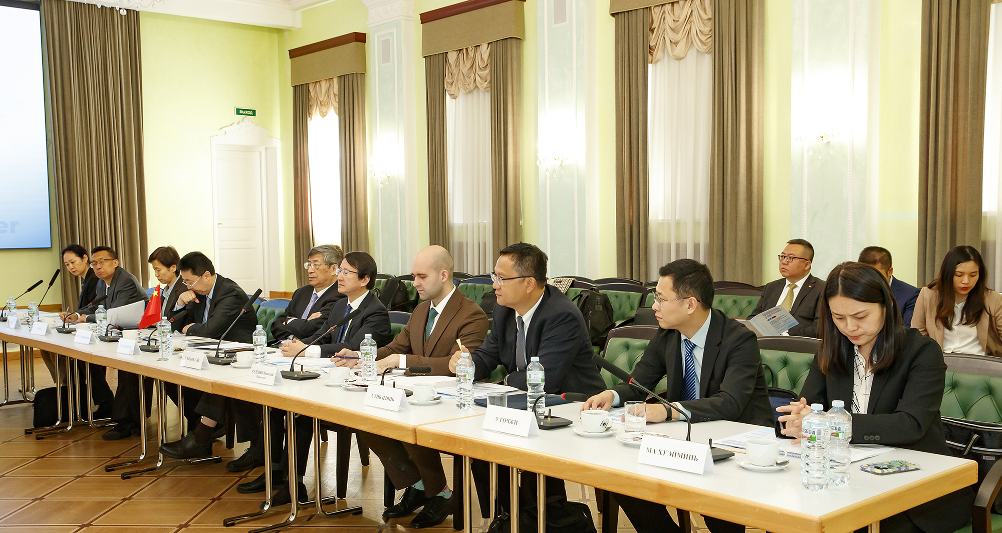 On behalf of JINR, Vice Director of the Institute Vladimir Kekelidze, Vice Director of the Institute Sergey Dmitriev, JINR Chief Scientific Secretary Sergey Nedelko, his Deputy, Scientific Secretary of the Expert Work Group Alexey Zhemchugov, Director of the JINR University Centre Dmitry Kamanin, International Cooperation Advisor to JINR Director Irek Suleymanov, Deputy Head of the JINR International Cooperation Department Elena Badawy also participated in the event. A Chinese delegation included representatives of the Ministry of Science and Technology of China Zhou Yunfan, Sun Jian, Wu Guozhi, Ma Huimin, a representative of the Chinese Academy of Sciences Wu Yan, Science Advisor to the Chinese Embassy in Russia Miao Fei, First Secretary of the Embassy Yue Ping, and other employees of the Embassy. In addition, a representative of the Ministry of Science and Higher Education of Russia Evgenia Meshcheryakova joined the meeting.