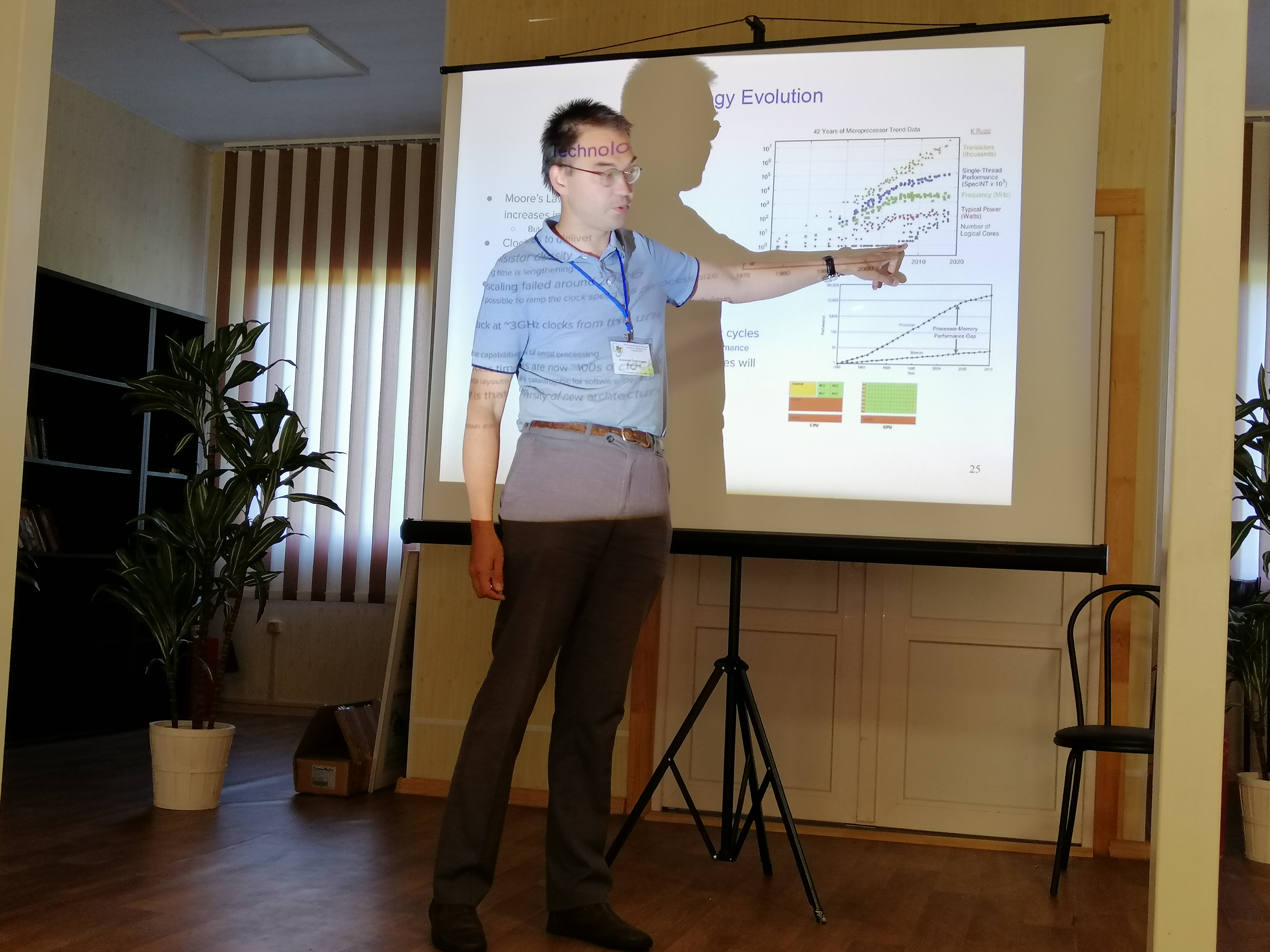 It was the first time the School held a workshop “Introduction to parallel computing” at which participants could use a small piece of the computing power of the Supercomputer “Govorun” right from their laptops. It was brought to the island by organizers. Following the tradition, the programme included time to discuss problems that concern young employees of the Institute and ways to solve them. A meeting with a representative of the Directorate, RAS Corresponding Member Grigory Dmitrievich Shirkov had a round-table format. In particular, participants discussed changes to the rules for selecting the winners of AYSS scientific conferences held in Dubna and Alushta. The issue of transfer of active postgraduates to full-time positions was not left without discussion. It was decided to meet with representatives of the Directorate in August in the territory of the Institute for it.