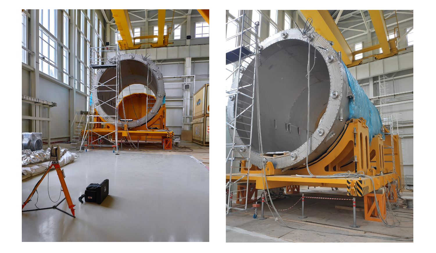 The packing film which protected the magnet inside the sarcophagus was removed, as well as the readings of the impact sensors fixed on the magnet itself were checked in their presence. In addition, geodetic measurements were performed at the control points on the body of the magnet. Both the sensor readings and the measurements performed confirmed that the most complicated long-lasting logistics operation to deliver the magnet from Genoa to Dubna was a success, and the cargo arrived at its destination point being safe and sound.