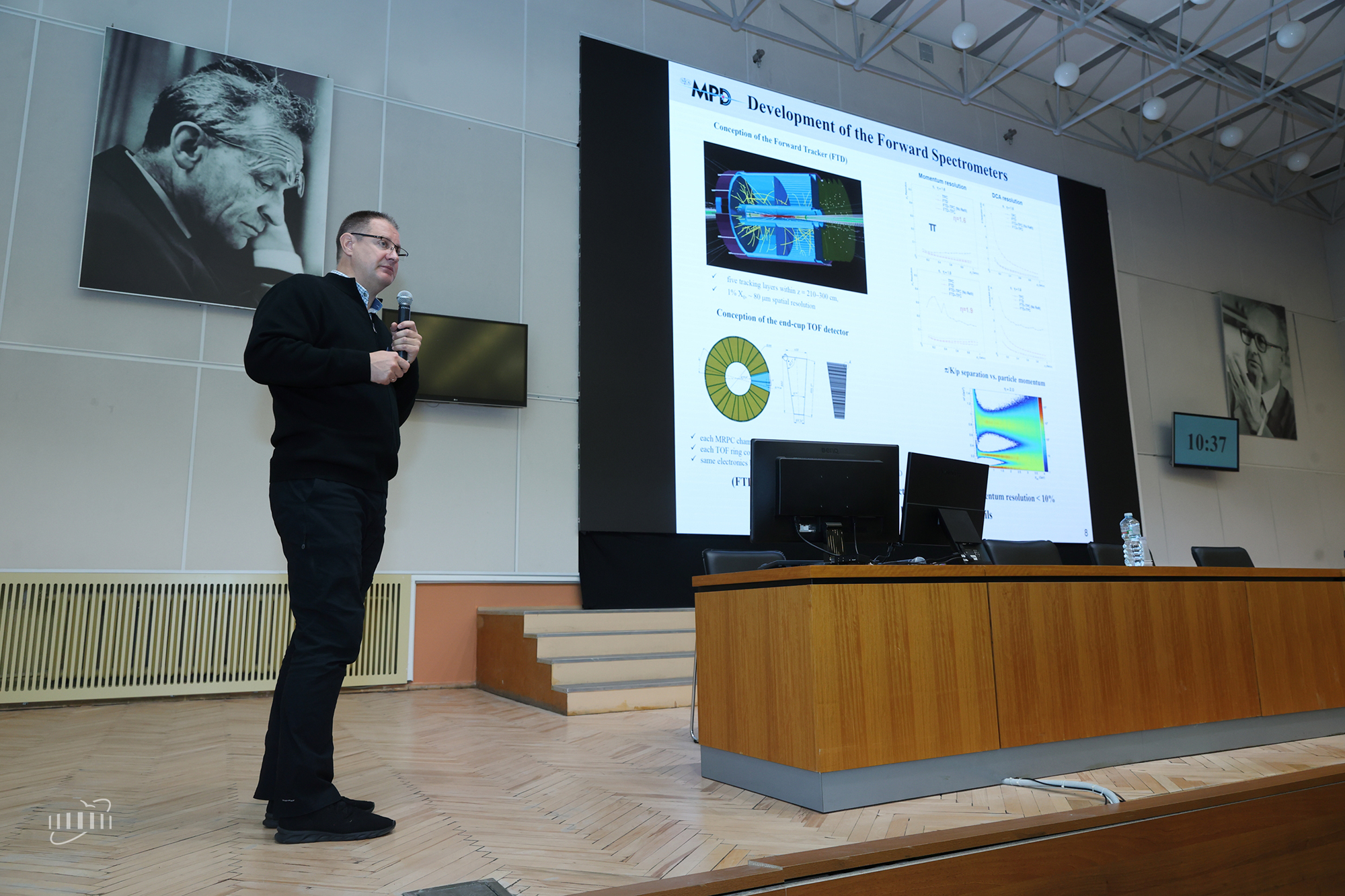 Victor Riabov provided an update on the MPD Collaboration, currently consisting of more than 500 specialists from 12 countries, including the Joint Institute for Nuclear Research.