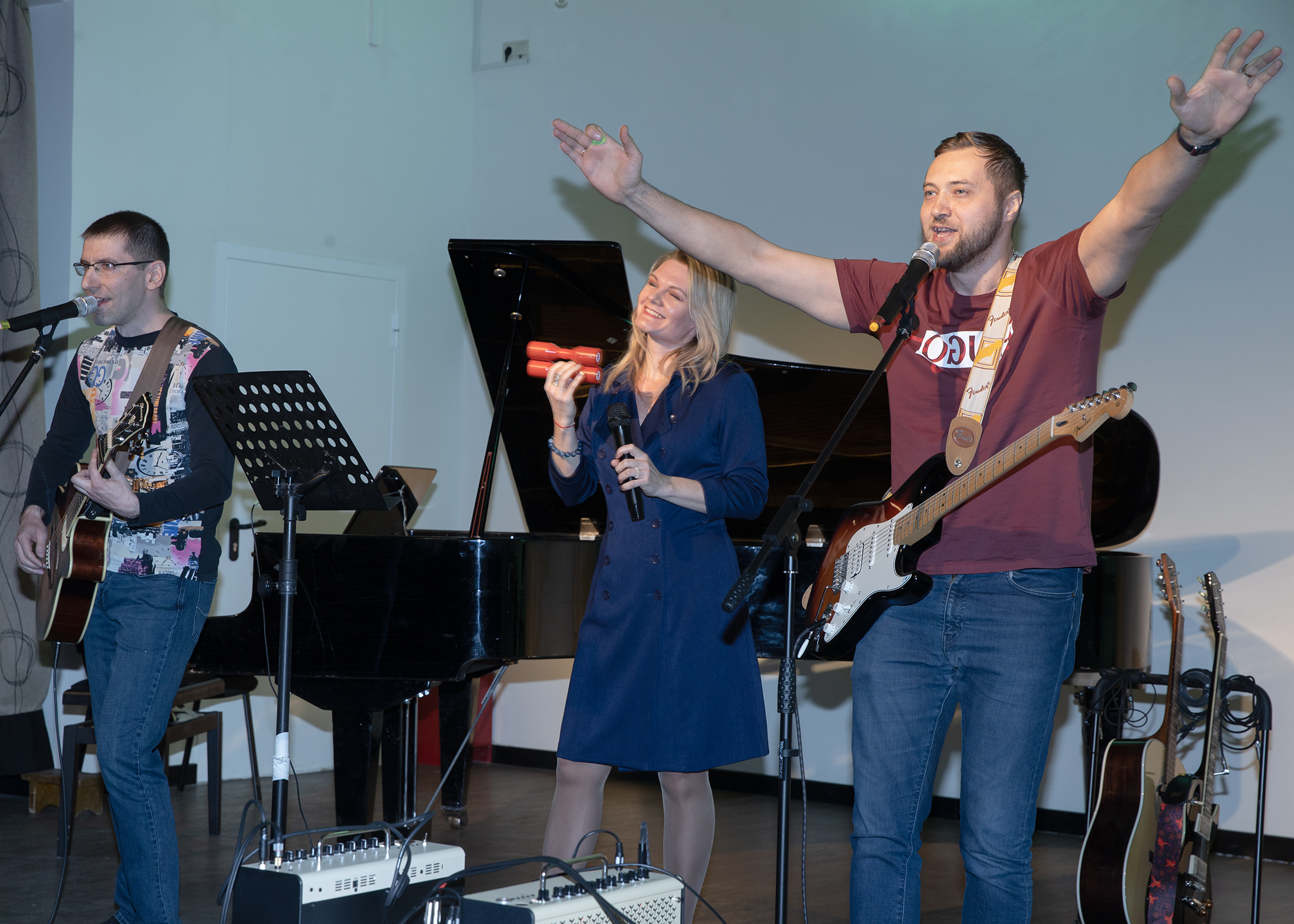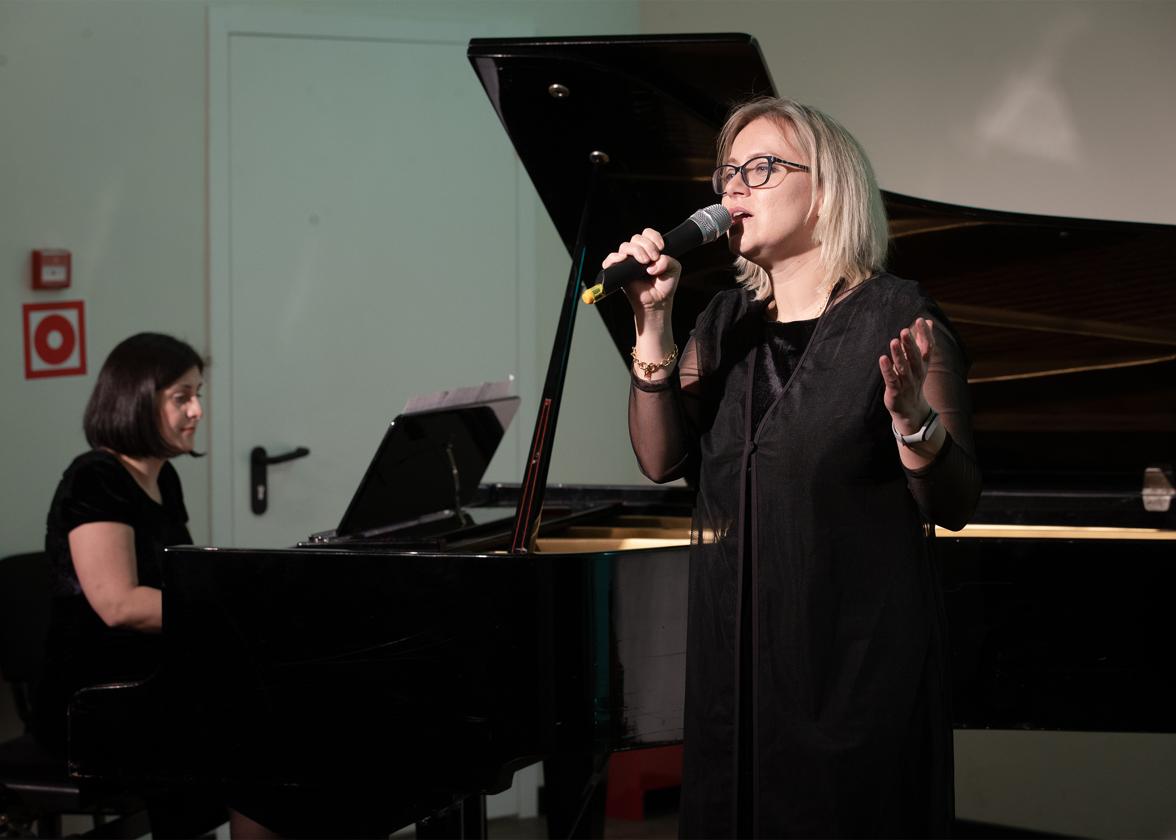 Одним из ярких номеров вечера стало выступление Анны Гуляевой (ЛЯР), которая спела известные бардовские песни и песню собственного сочинения: «Благодаря концерту я узнала, что в ОИЯИ теперь есть Женский комитет, — рассказала Анна. — Это так здорово – комитет только появился, и сразу начал с такого позитивного, творческого дела! Работать в ОИЯИ для меня – огромное удовольствие, в первую очередь потому, что ты постоянно находишься в кругу людей, влюбленных в свое дело и творящих будущее. Людей, у которых горят глаза, а в головах роятся бесконечные новые идеи. Сама я программист, а не ученый, но мысль о том, что ты вносишь в общее дело свой, пусть даже самый скромный вклад, приносит радость и умиротворение. Я многодетная мама, и буду рада, если однажды кто-то из моих детей будет работать в ОИЯИ».