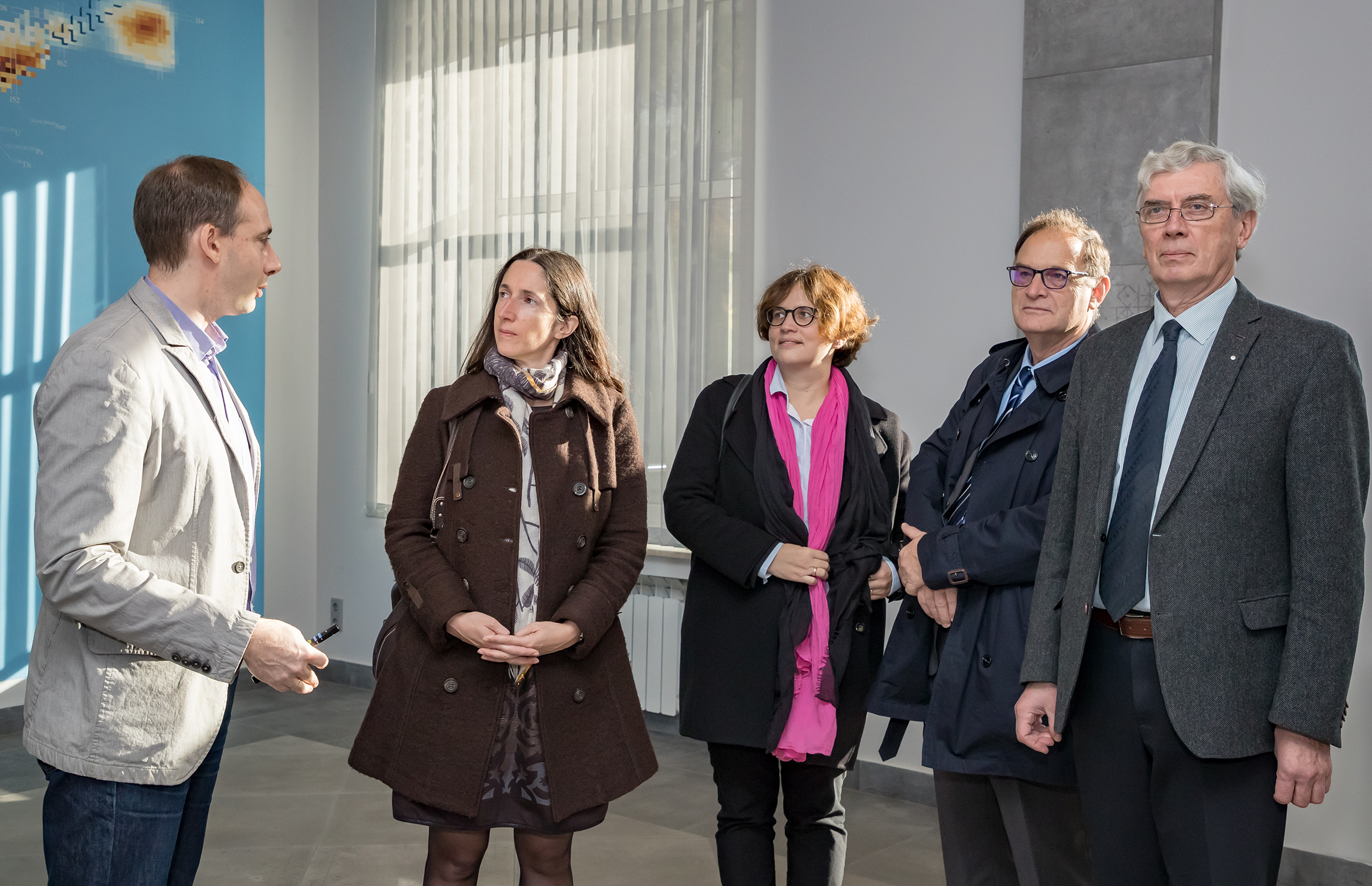С 15 по 17 октября 2018 г. ОИЯИ посетила делегация из Франции: Анна-Изабель Мадлен Этьенвр, директор Исследовательского института изучения фундаментальных законов Вселенной — IRFU СЕА (Сакле, Франция), Николя Аламанос, директор по научной работе IRFU, и Элоиза Юджиния Джульета Дансер, заместитель директора Национального центра GANIL (Кан, Франция).