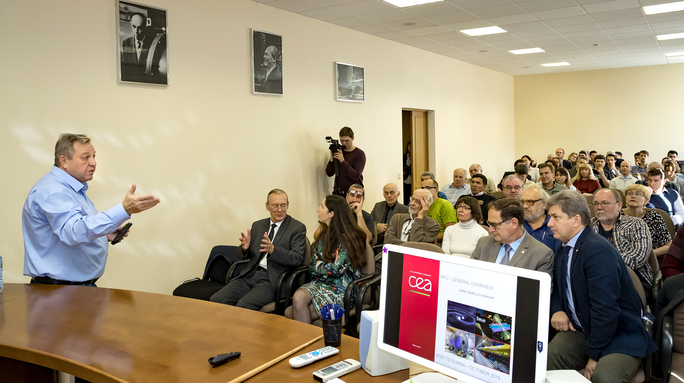 На общеинститутском семинаре 17 октября директор IRFU Анна-Изабель Мадлен Этьенвр прочла лекцию о деятельности своего института, представив широчайший спектр научных исследований центра. После семинара в своем комментарии для журналистов ОИЯИ директор IRFU в частности сказала: «Я очень сильно впечатлена тем, что увидела в лабораториях ОИЯИ в течение этих двух дней, в особенности проектом NICA и фабрикой сверхтяжелых элементов, а также проектами на нейтронном источнике, схожие с которыми есть у нас во Франции. Все это очень впечатляет». Закончилась программа работы делегации межлабораторным рабочим совещанием, на котором главный научный сотрудник ЛЯР Л.В.Григоренко представил концепцию перспективного проекта электрон-ионного коллайдера DERICA и обрисовал возможности для сотрудничества.