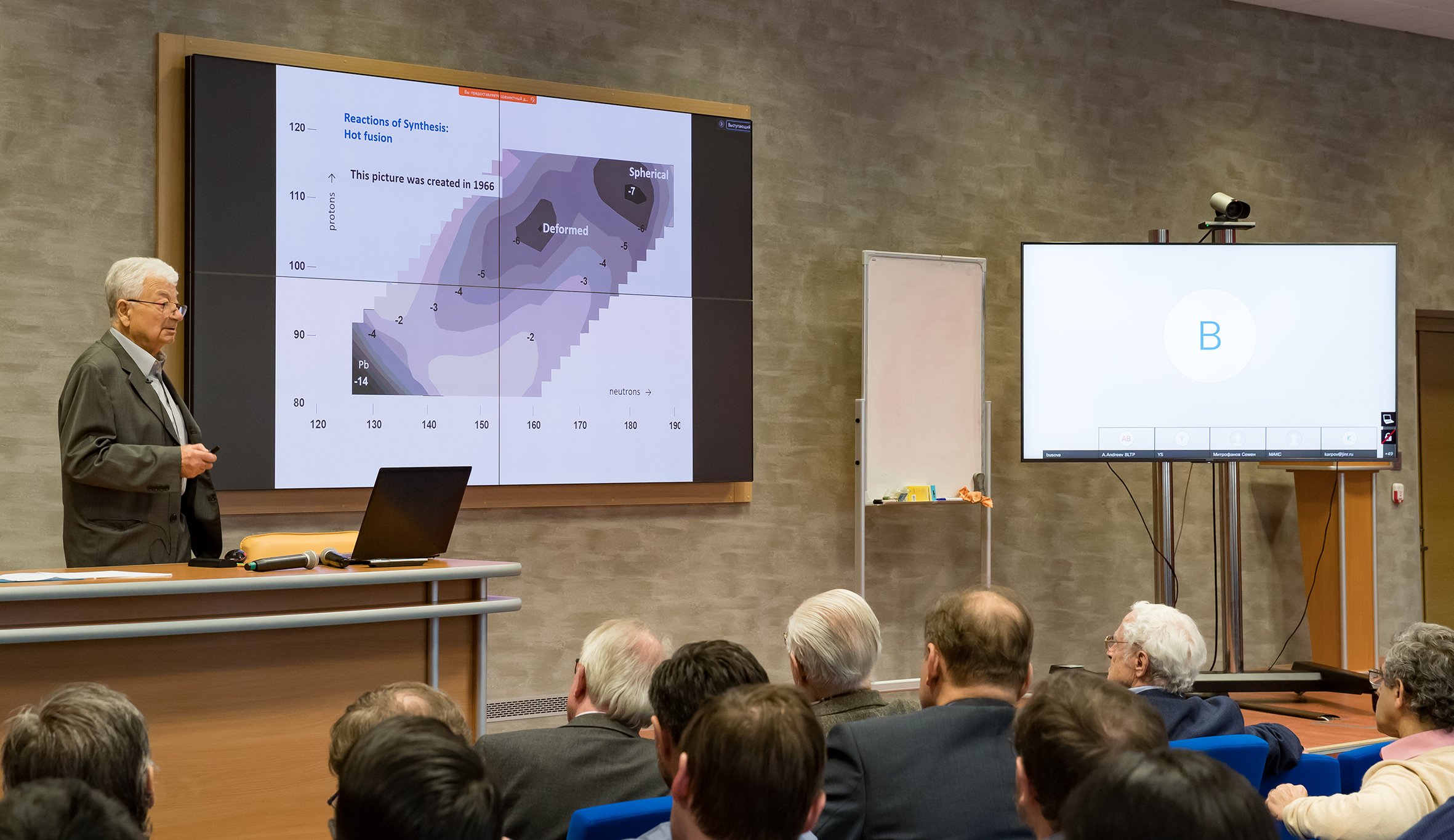К семинару присоединились не только сотрудники ЛЯР ОИЯИ, но также представители других лабораторий и дирекции Института.