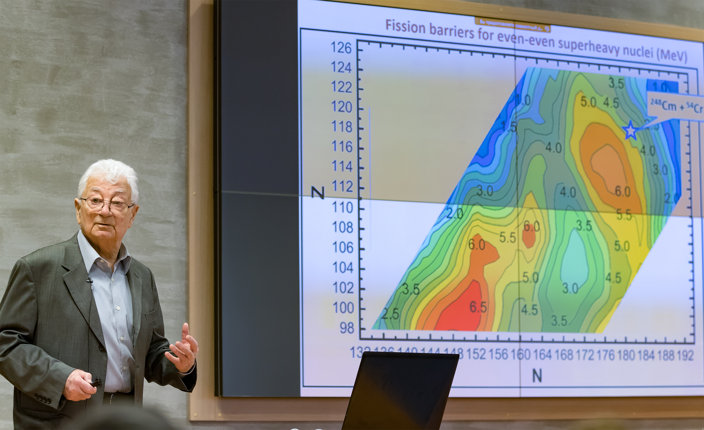 Научный руководитель Лаборатории ядерных реакций имени Г. Н. Флерова академик Юрий Оганесян выступил 24 марта на общелабораторном семинаре с докладом “На пути к синтезу 120-го элемента”.