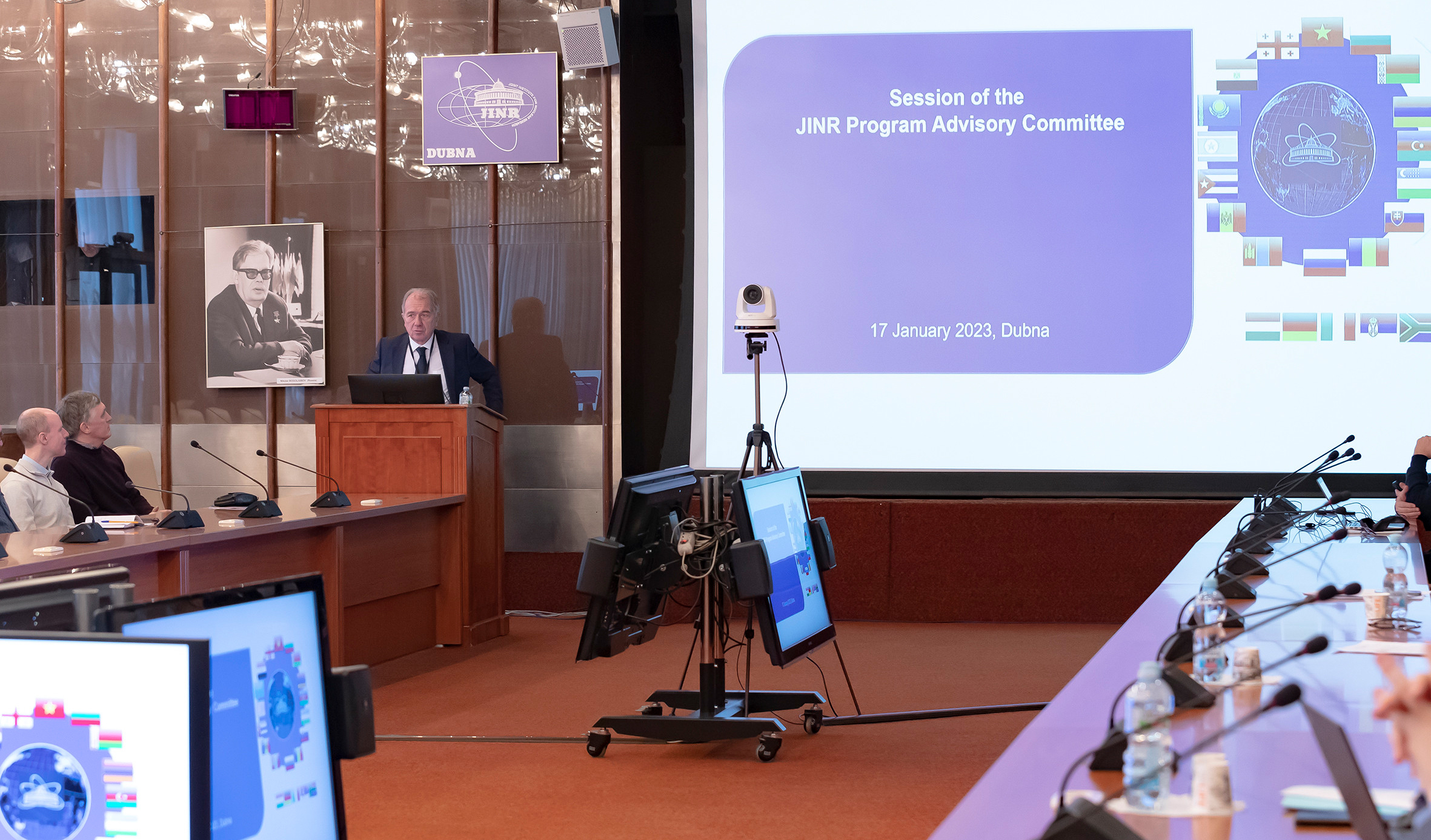 — Презентация директора ЛНФ Валерия Швецова, после которой последовал доклад доктора наук Андрея Долгих и их обсуждение, действительно были одним из важнейших событий нашей встречи. Тем не менее в повестке дня ПКК были и другие чрезвычайно важные вопросы. В нее вошла, например, информация вице-директора ОИЯИ Лачезара Костова о резолюции 132-й сессии Ученого совета ОИЯИ (сентябрь 2022 г.) и о решениях Комитета полномочных представителей правительств стран-участниц ОИЯИ (ноябрь 2022 г.). Далее, традиционно важным пунктом стало заседание ПКК с членами дирекции ОИЯИ, в первую очередь с директором ОИЯИ Григорием Трубниковым, который более получаса делал свой доклад и очень откровенно и конструктивно ответил на вопросы, заданные членами ПКК, среди которых были и весьма деликатные.
