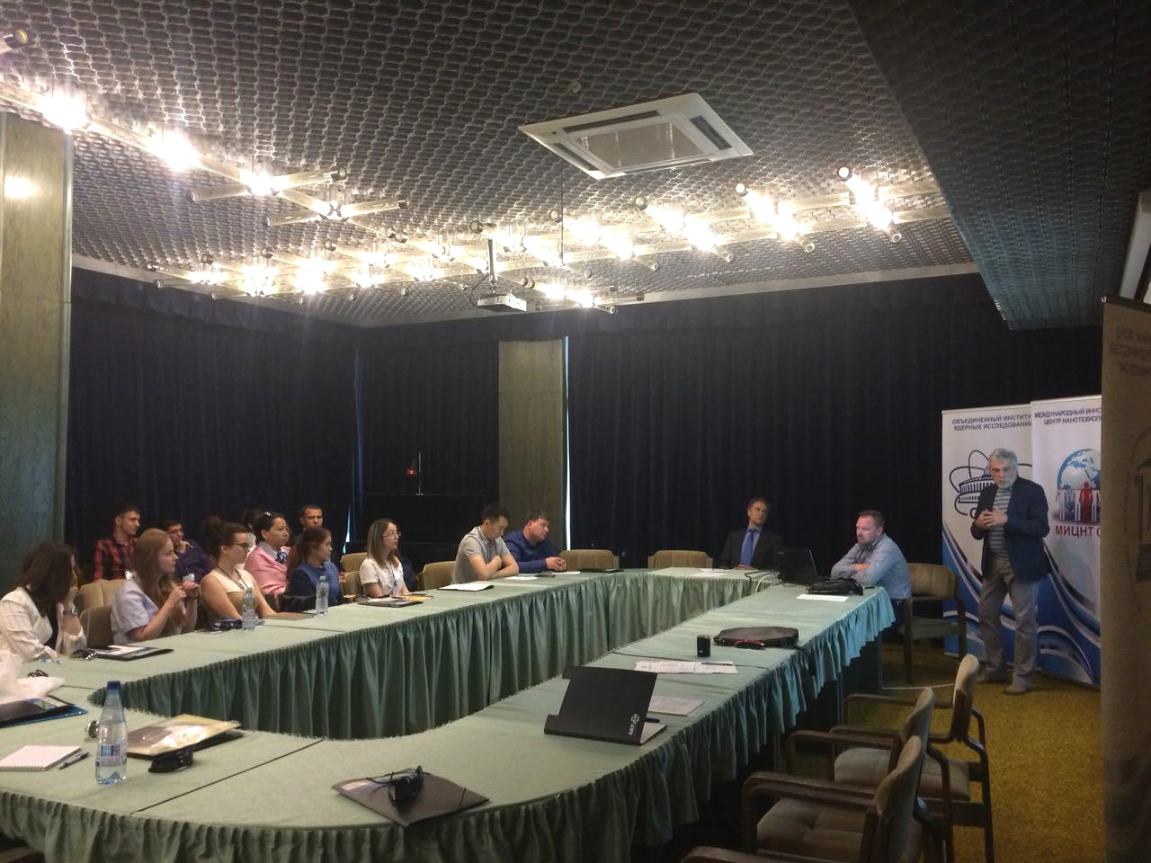 На открытии стажировки директор МИЦНТ СНГ Александр Васильевич Рузаев рассказал об истории создания центра, целях и направлениях его работы. Создан центр в 2009 году, и за это время уже 215 молодых ученых из более 50 научных учреждений стран СНГ имели возможность поработать в лабораториях Объединенного института ядерных исследований.