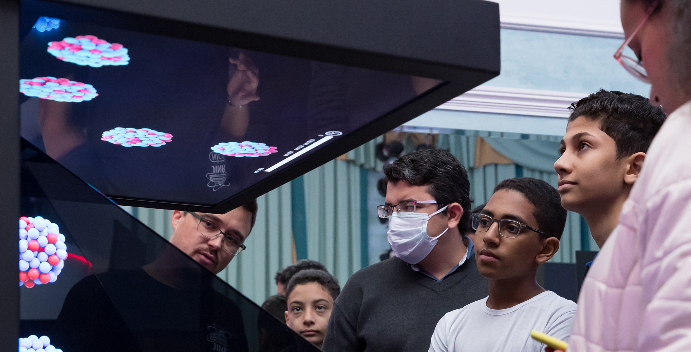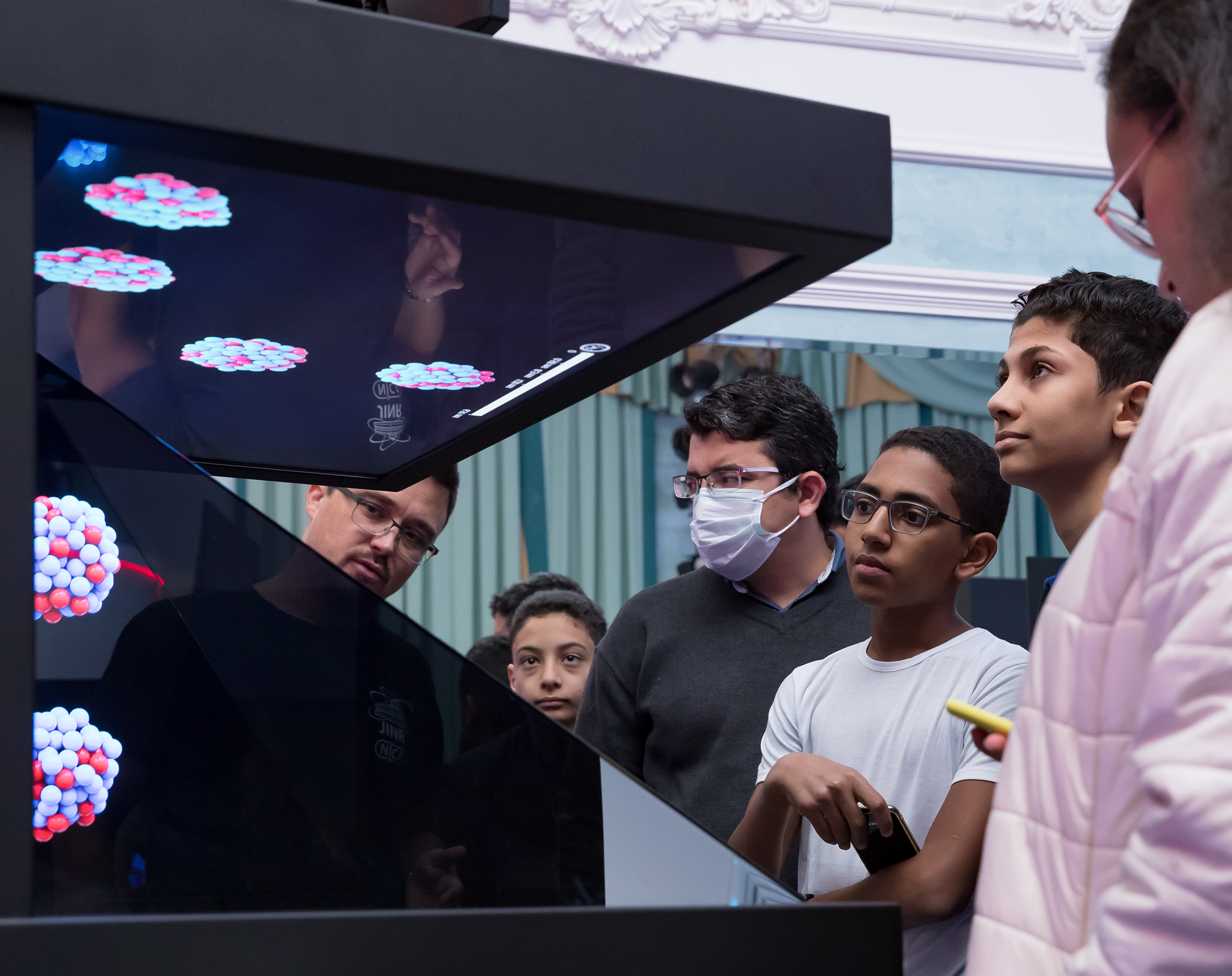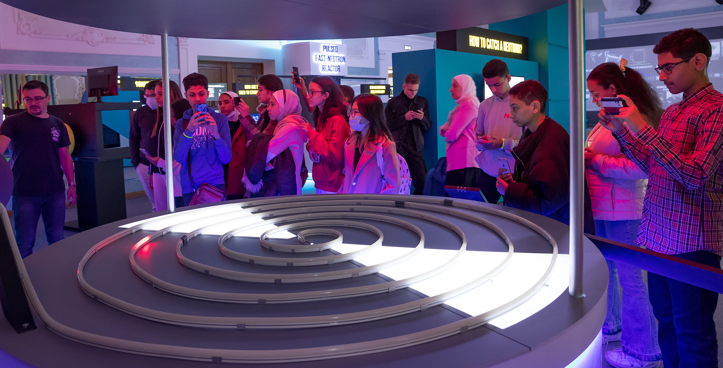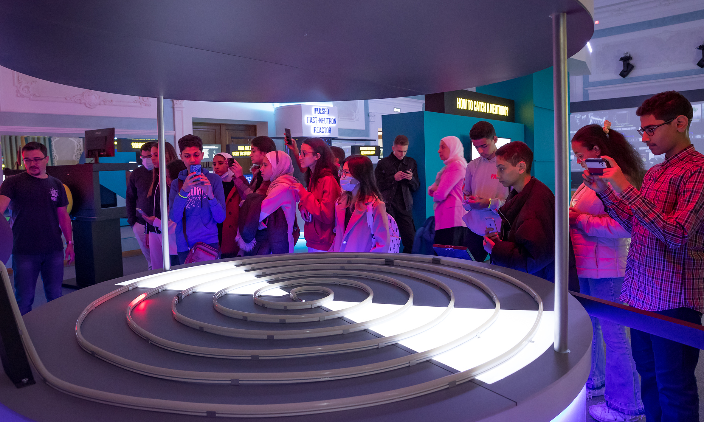 Программа мероприятия стартовала на интерактивной выставке ОИЯИ, посвященной базовым установкам Института. Участников и их кураторов с египетской стороны поприветствовал заместитель директора Учебно-научного центра Александр Верхеев. На выставке инженер-программист ЛФВЭ Никита Сидоров познакомил ребят с историей Института и рассказал о его научных направлениях.