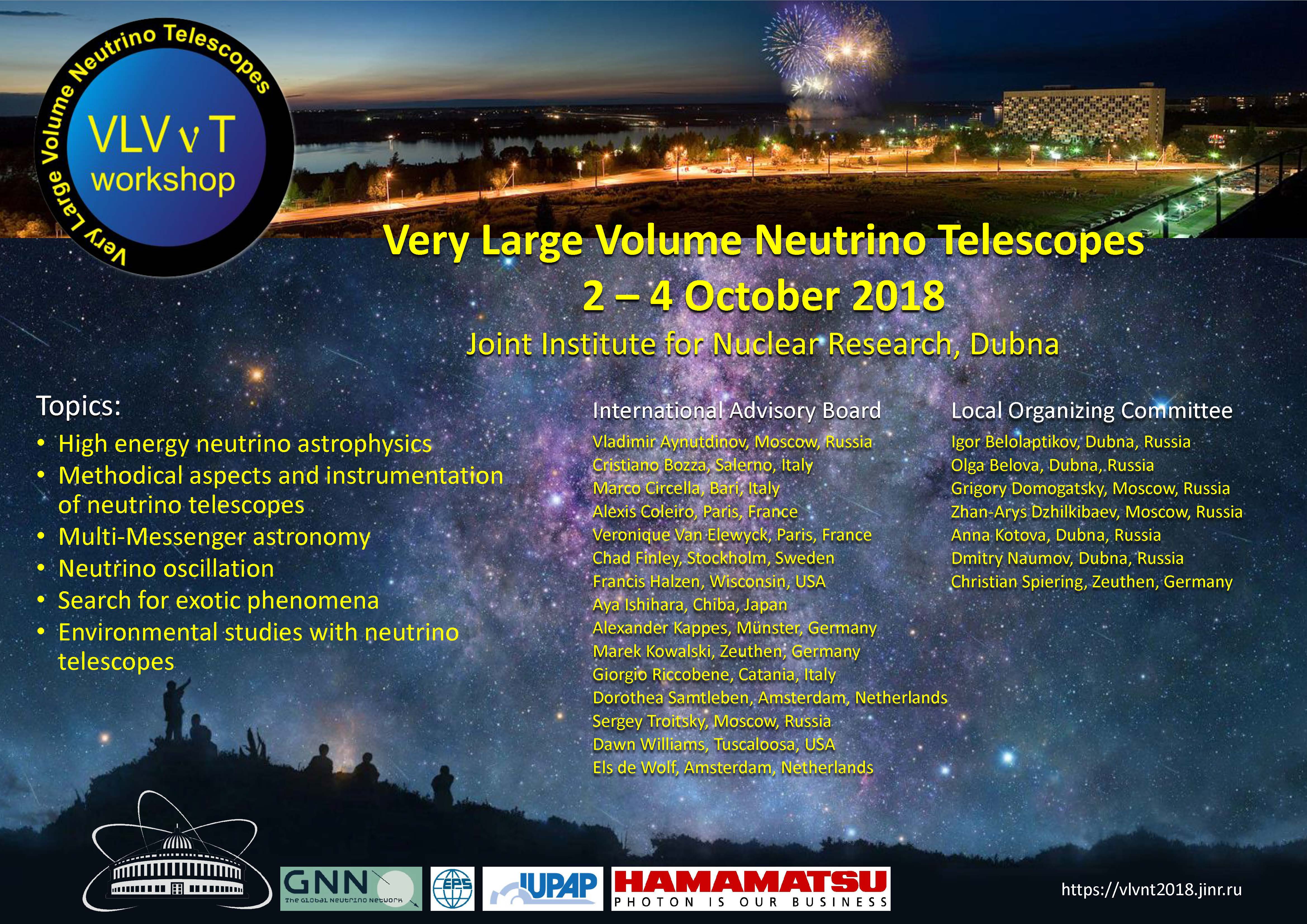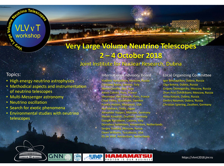 Со 2 по 4 октября 2018 года, в ОИЯИ проходит Международное рабочее совещание по нейтринным телескопам очень большого объема (VLVnT-2018).