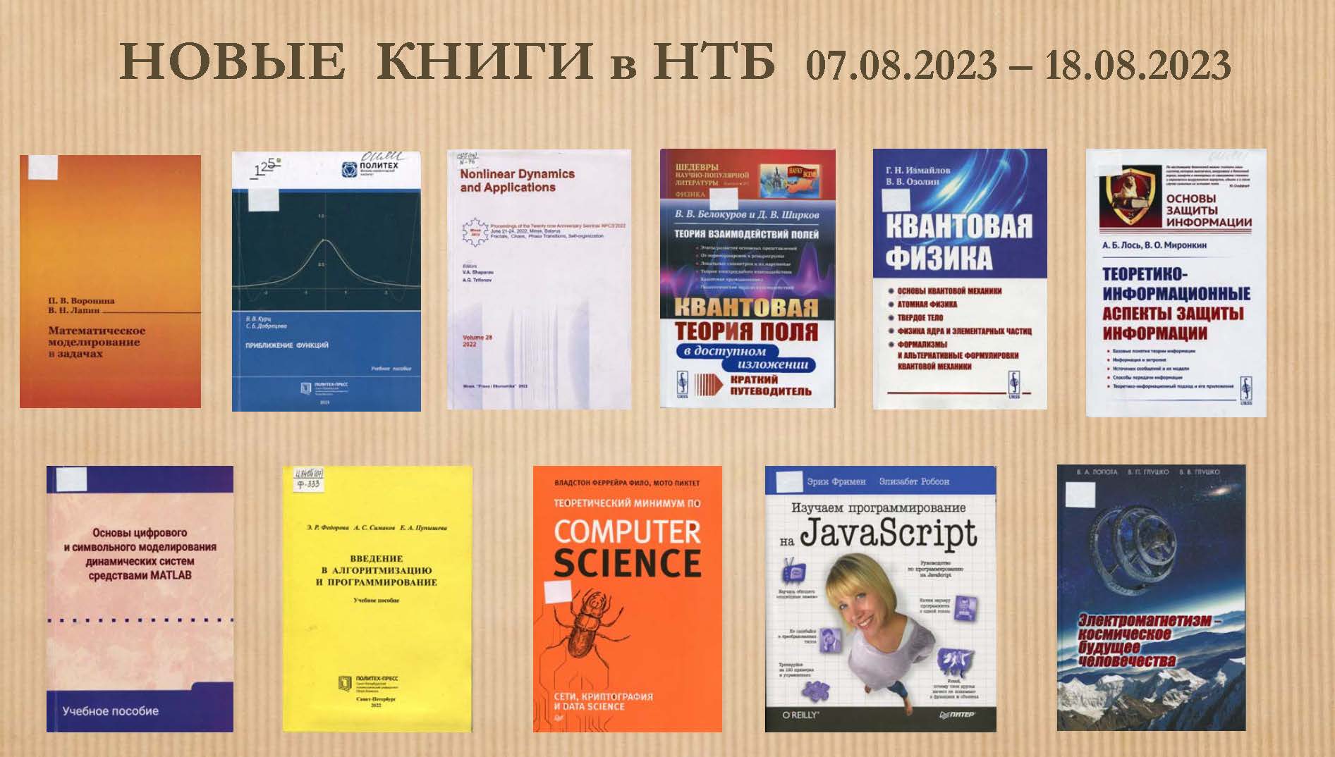 On 7 – 18 August 2023, the JINR Science and Technology Library invites visitors to the New Book Acquisitions exhibition. Readers are offered educational and scientific literature that will be interesting for students, postgraduates, teachers, and researchers.