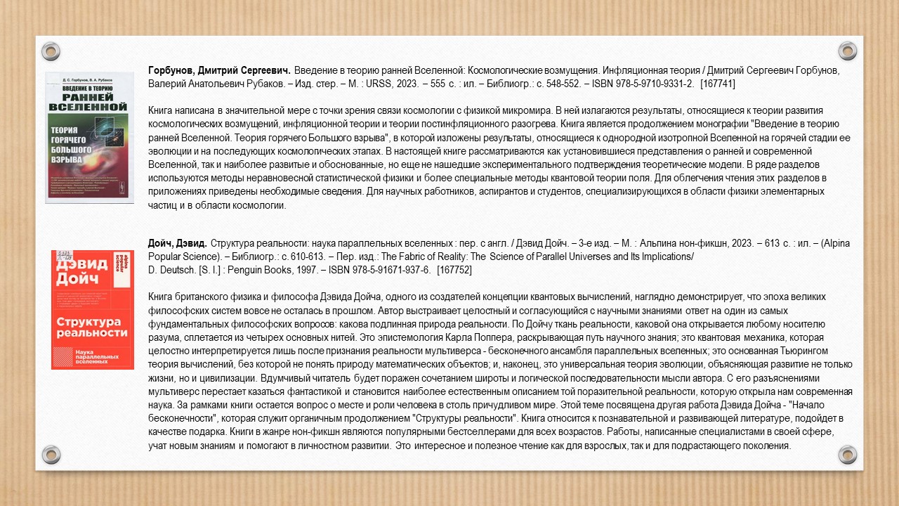 • textbooks on general relativity, elementary particle physics, cosmology, and quantum physics;