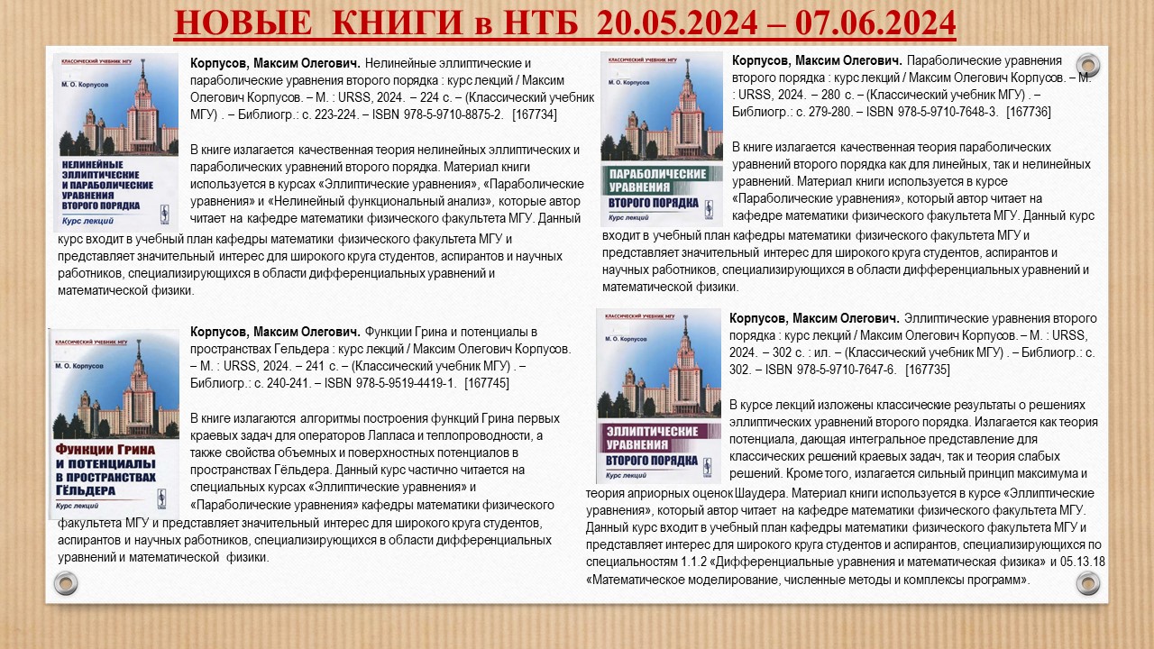 From 20 May to 7 June 2024, the JINR Science and Technology Library invites visitors to the New Book Acquisitions exhibition.