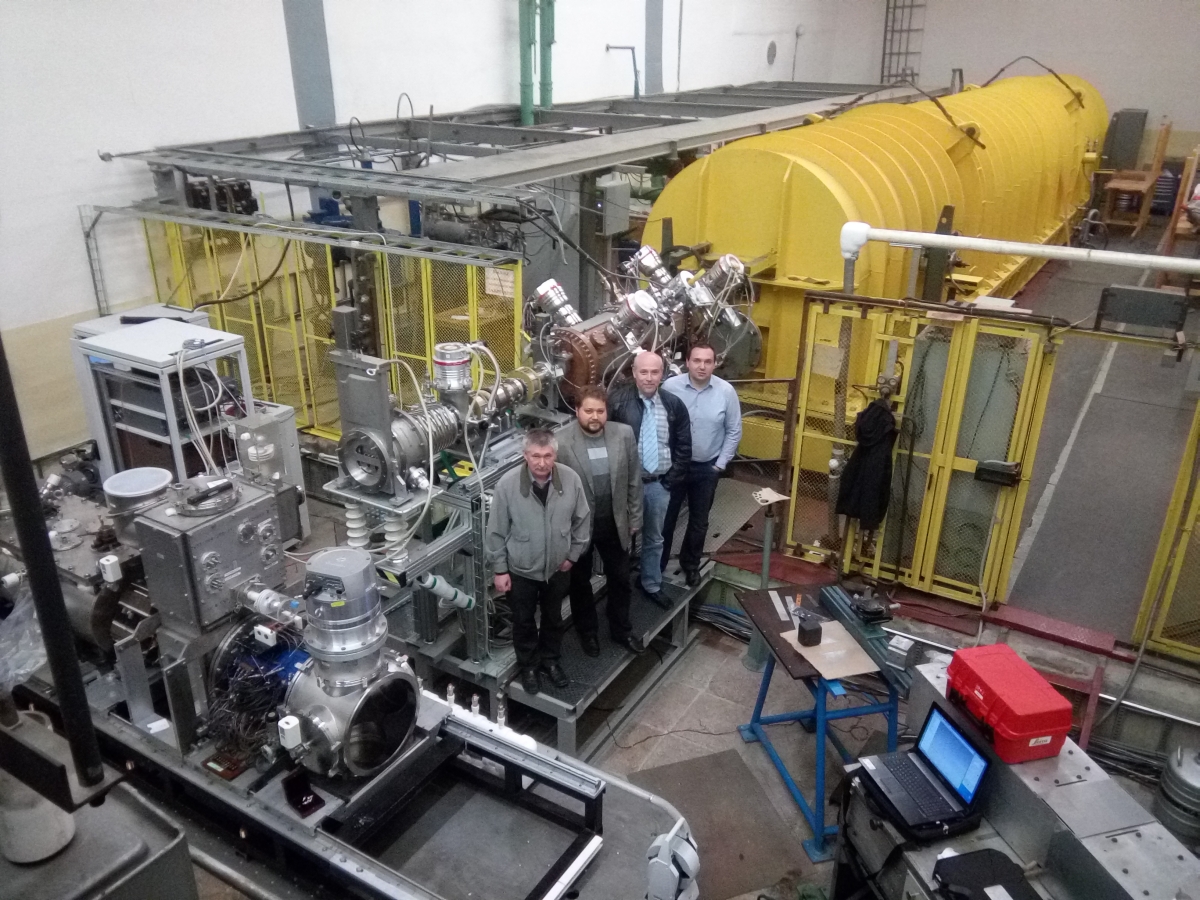 Upgraded light ion injector and (from left to right): Chief Engineer of the “Nuclotron” E.M.Syresin, A.V Butenko, T.V.Kulevoy, S.M.Polozov