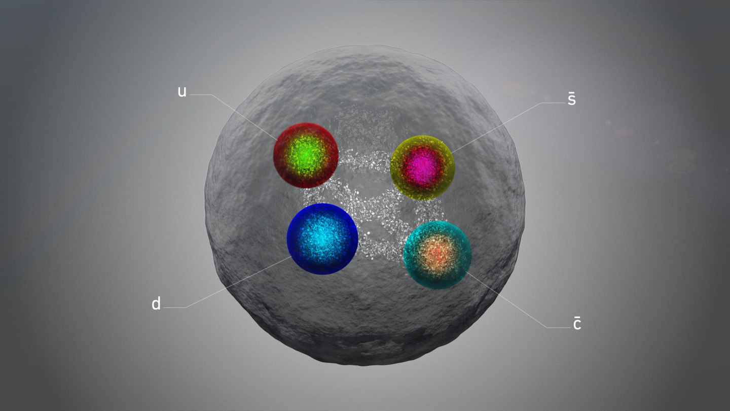 The LHCb experiment at CERN has developed a penchant for finding exotic combinations of quarks, the elementary particles that come together to give us composite particles such as the more familiar proton and neutron. In particular, LHCb has observed several tetraquarks, which, as the name suggests, are made of four quarks (or rather two quarks and two antiquarks). Observing these unusual particles helps scientists advance our knowledge of the strong force, one of the four known fundamental forces in the universe. At a CERN seminar held virtually on 12 August, LHCb announced the first signs of an entirely new kind of tetraquark with a mass of 2.9 GeV/c²: the first such particle with only one charm quark.