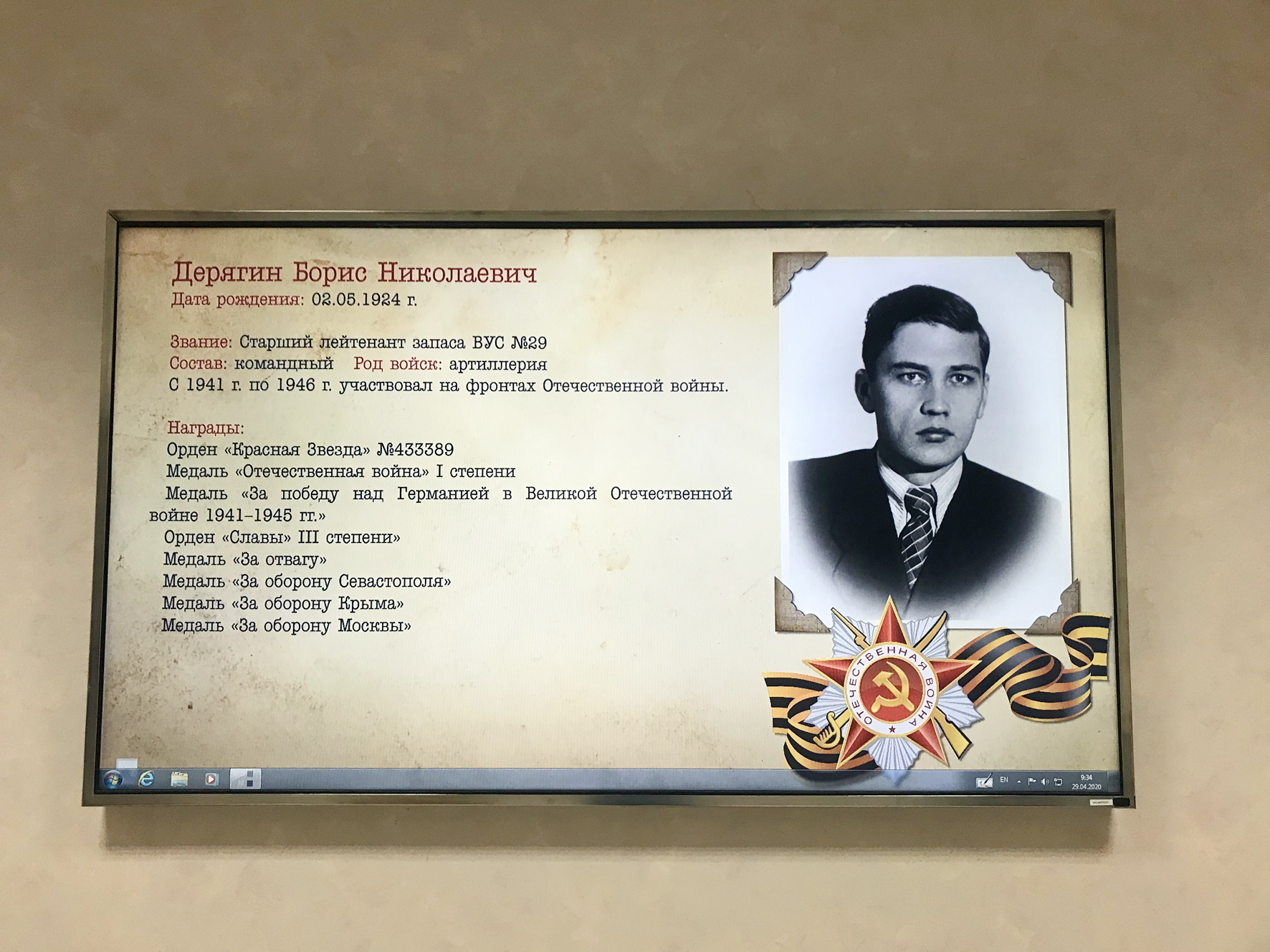 Information stands in all FLNP buildings broadcast the list of the Laboratory’s employees who took part in the Great Patriotic War