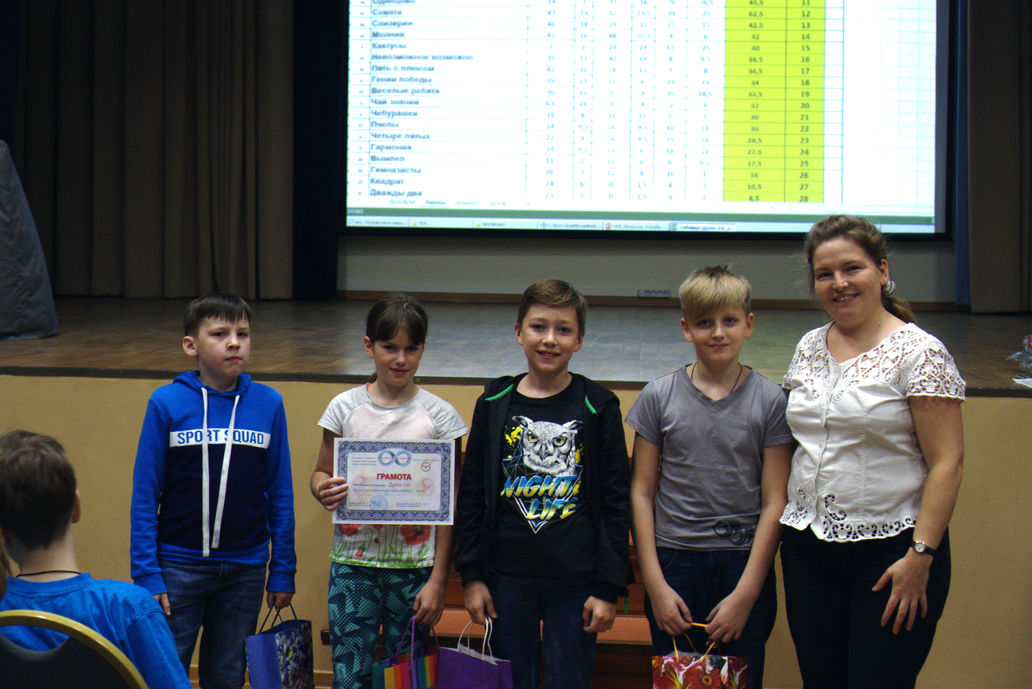 Prize holders: Vyacheslav Zhabitsky (7 grade, Lyceum #6), Ivan Voronuik (7 grade, School#9), Mikhail Kopach (8 grade, Lyceum #6), Svyatoslav Sharov (8 grade, Gymnasium #11).