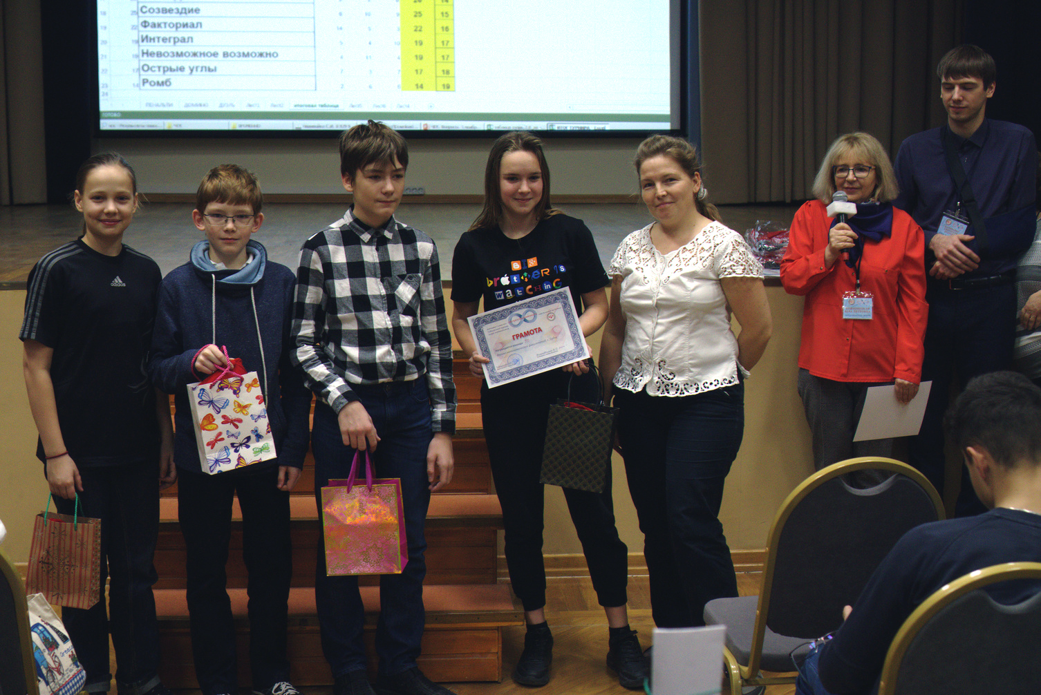 The tournament took two days: teams competed in three mathematics team competitions: “Domino”, “Penalty” and “Duel”. Players were supposed not only to solve mathematical tasks correctly but also do it faster than their rivals following a beneficial strategy. In the evening, the game “What? Where? When?” was held.