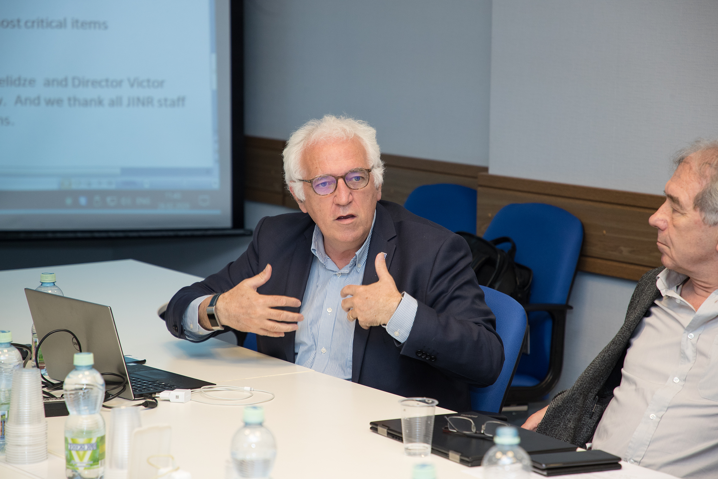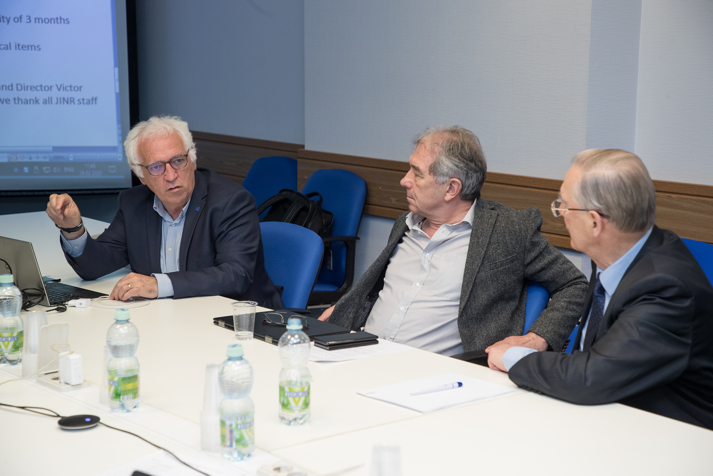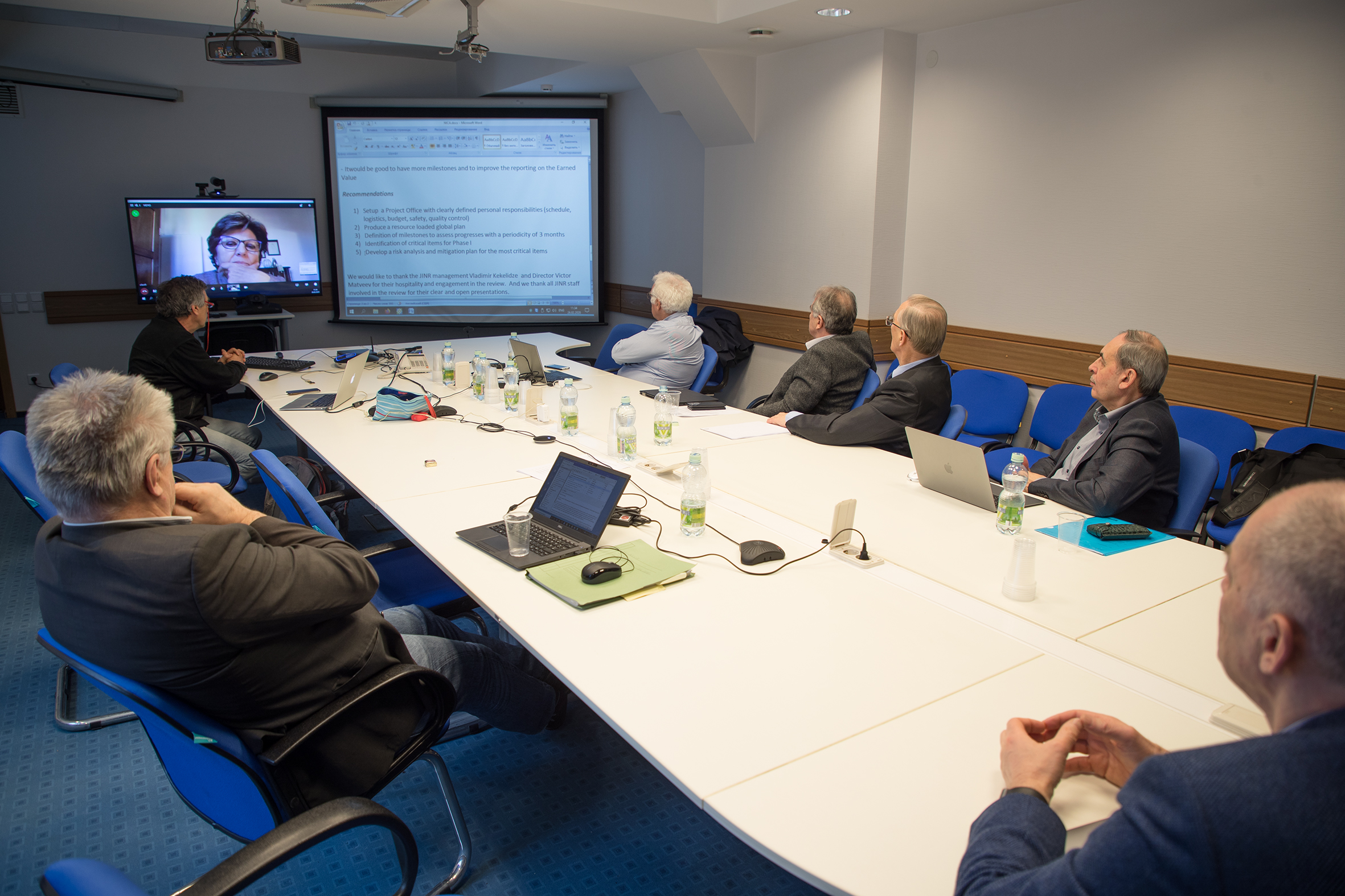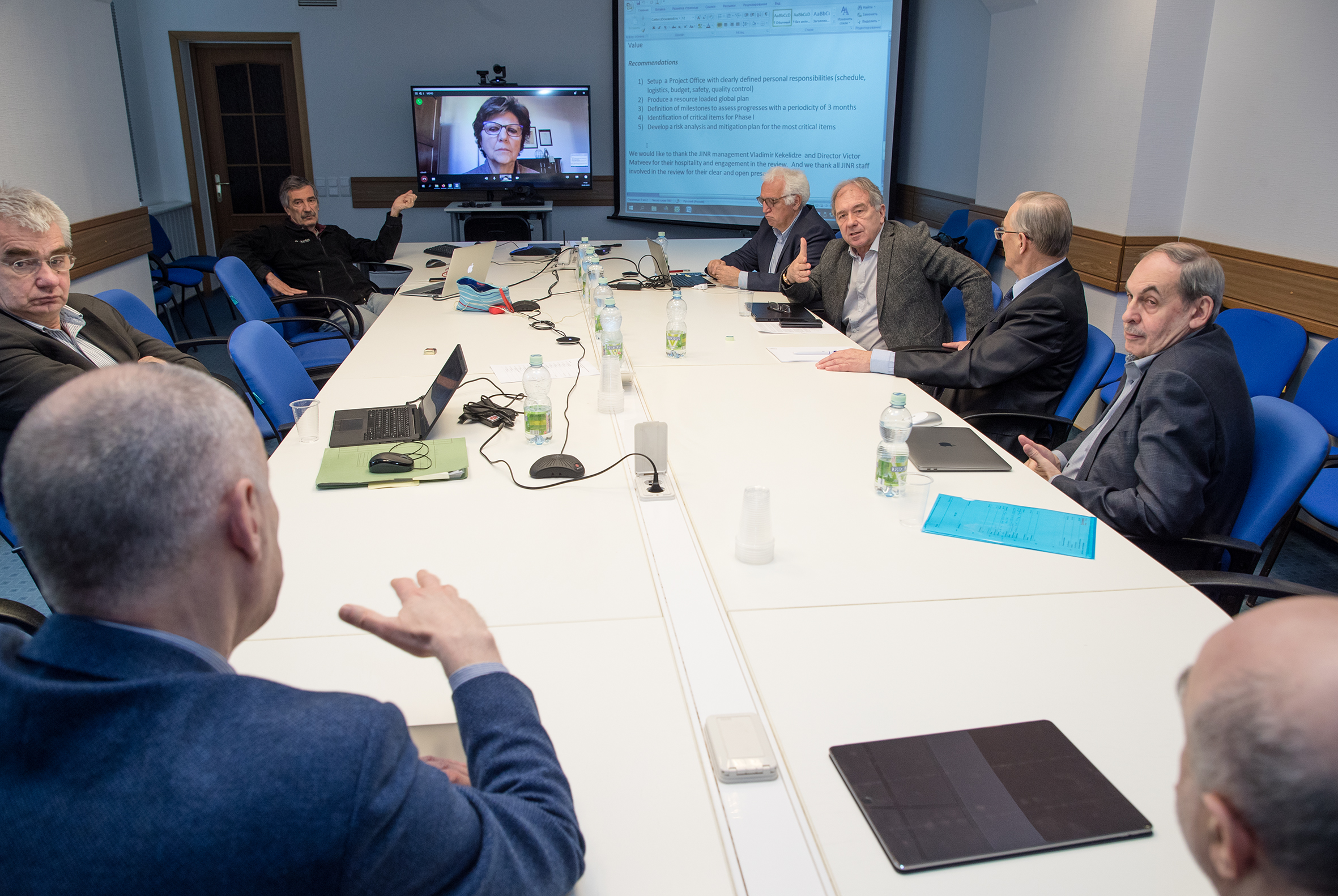We planned to establish such a committee for the NICA project earlier but there was a difficulty in selecting members of the committee as far as their professional level was supposed to be very high. Members of the Committee should be specialists possessing relevant experience in the implementation of large-scale projects as well as having extensive experience in the management of large teams and in planning the implementation of large-scale scientific projects. As soon as we managed to find such people and get their consent to become members of the NICA Review Committee, we organized the first meeting of the Committee in the shortest possible time. It took place on 24 – 26 February. Famous scientists became members of the Committee: former President of the National Institute for Nuclear Physics (INFN, Italy) Fernando Ferroni, CERN Director for Accelerators and Technologies Frédérick Bordry, Latchesar Kostov who has been Chairman of the JINR Committee of Plenipotentiary Representatives until recently and now is Plenipotentiary of the Republic of Bulgaria at JINR representing the Bulgarian Nuclear Regulatory Agency. There are also three current members of the JINR Scientific Council: Research Director of the DESY research centre Joachim Mnich, former Vice-President of the CERN Council and a current Professor at Racah Institute of Physics of the Hebrew University Eliezer Rabinovici, and ex-President of the European Physical Society, current President of the Italian Centre “Enrico Fermi” and a Professor at the Bologna University Luisa Cifarelli. On behalf of the Russian Academy of Sciences, on the recommendation of RAS President A. M. Sergeev, Leonid Vladmirovich Kravchuk, Director of one of the largest academic institutions – the Institute for Nuclear Research RAS – also became a member of the Committee. Thus, the Committee consists of seven brilliant scientists experienced in managing large-scale projects. Unfortunately, not all the members managed to gather those days, and two of them, namely Eliezer Rabinovici and Luisa Cifarelli, participated in the meeting in the video-conference format.