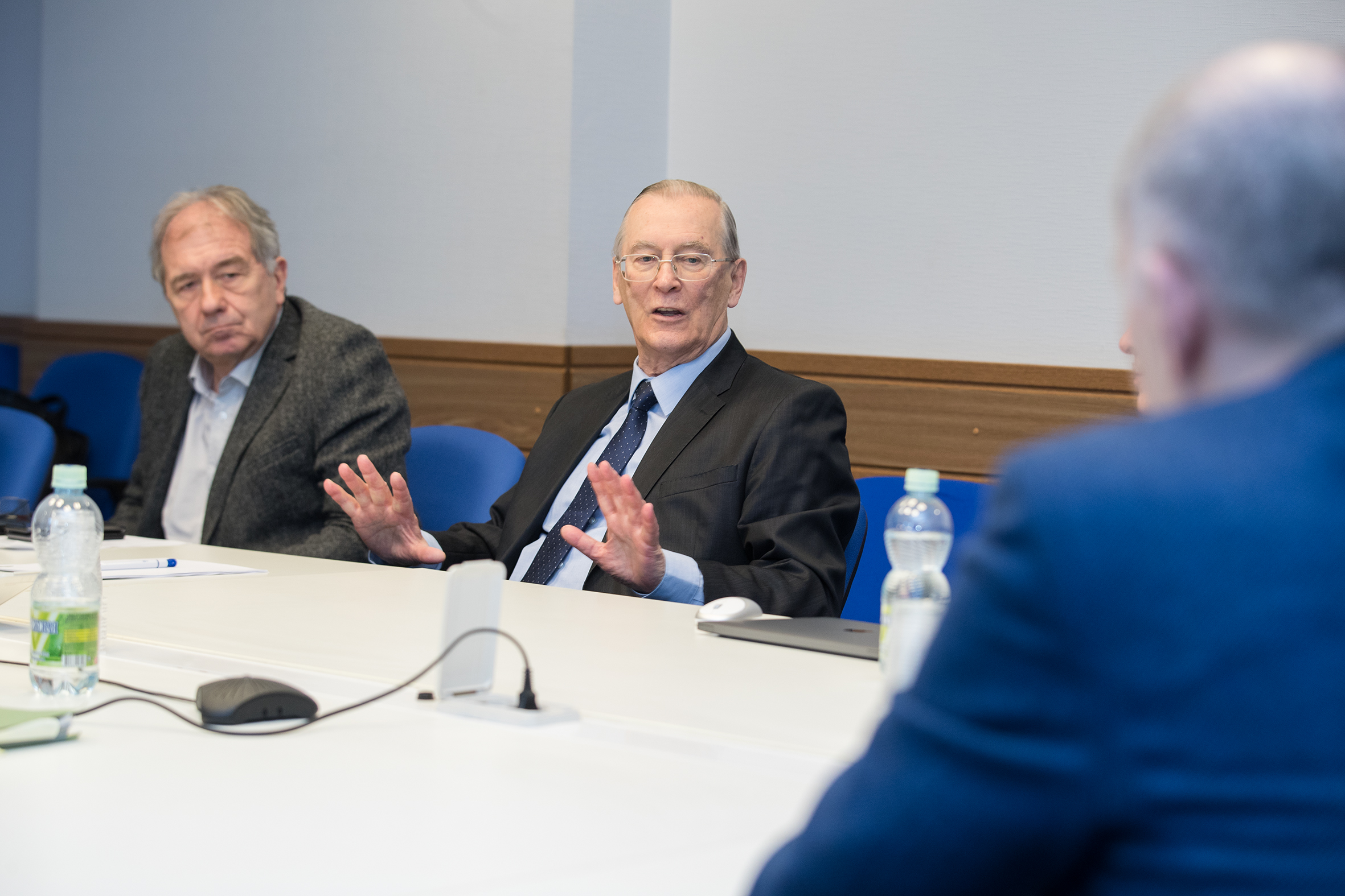 The aim of the Committee is to consult the Supervisory Council and the CP on issues related to cost estimate and work progress towards the implementation of the NICA project. The Committee headed by Fernando Ferroni (INFN, Italy) consists of six more specialists in the fields of high energy physics and accelerator physics. First Deputy Minister of Science and Higher Education of Russia G. V. Trubnikov took part in the first day of the CSRC meeting. All the meetings of the Committee were attended by JINR Director V. A. Matveev, Head of the project “NICA complex” V. D. Kekelidze and Co-Head of the theme “NICA complex” A. S. Sorin. Head of the project’s directorate R. Lednický and Deputy Head of the project office Yu. K. Potrebenikov participated in the discussion of financial issues and possible risks. JINR Chief Accountant S. N. Dotsenko and Deputy Head of the F&E Office M. P. Vasiliev were invited to the CSRC meeting.