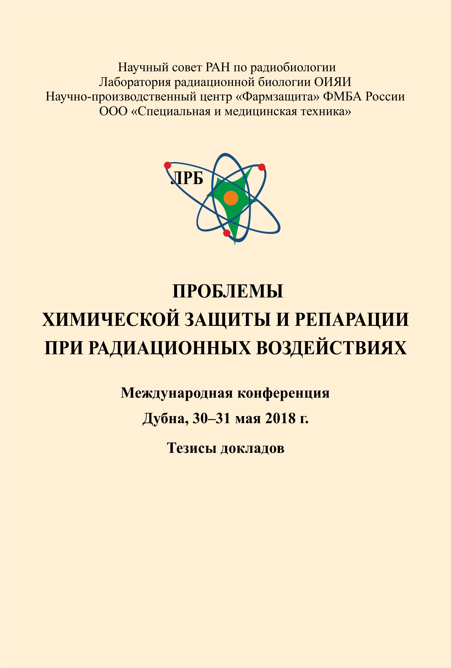 Специалисты, занимающиеся изучением механизмов поражающего действия радиации, проблемами репарации лучевых поражений, разработки, испытаний и внедрения в практику противолучевых средств собрались 30 – 31 мая 2018 г. в Доме международных совещаний в Дубне на Международной конференции «Проблемы химической защиты и репарации при радиационных воздействиях». Организаторы мероприятия: Научный совет РАН по радиобиологии, Лаборатория радиационной биологии ОИЯИ, Научно-производственный центр «Фармзащита» ФМБА России, ООО «Специальная и Медицинская Техника».